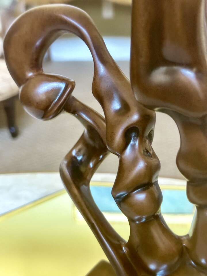 Made in the 1990’s beautiful wooden sculpture in pristine condition. This sensual sculpture of a man and woman kissing was designed by Alexsander Danel.Measures: 9” x 4-3/8” x 15” tall
