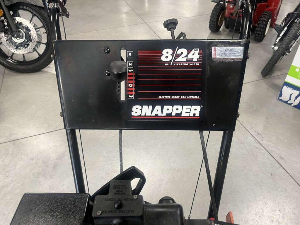 This is a used Snapper 2 stage snowblower for sale at Cutler's! It has normal wear for its age and is in good working condition! This model has several features that make snow removal easier than ever. This model includes: -Plug-in electric start -Variable speed transmission, including reverse gear -Dual-Stage snowblowing design -8hp Tecumseh engine -Adjustable chute control -24” tunnel