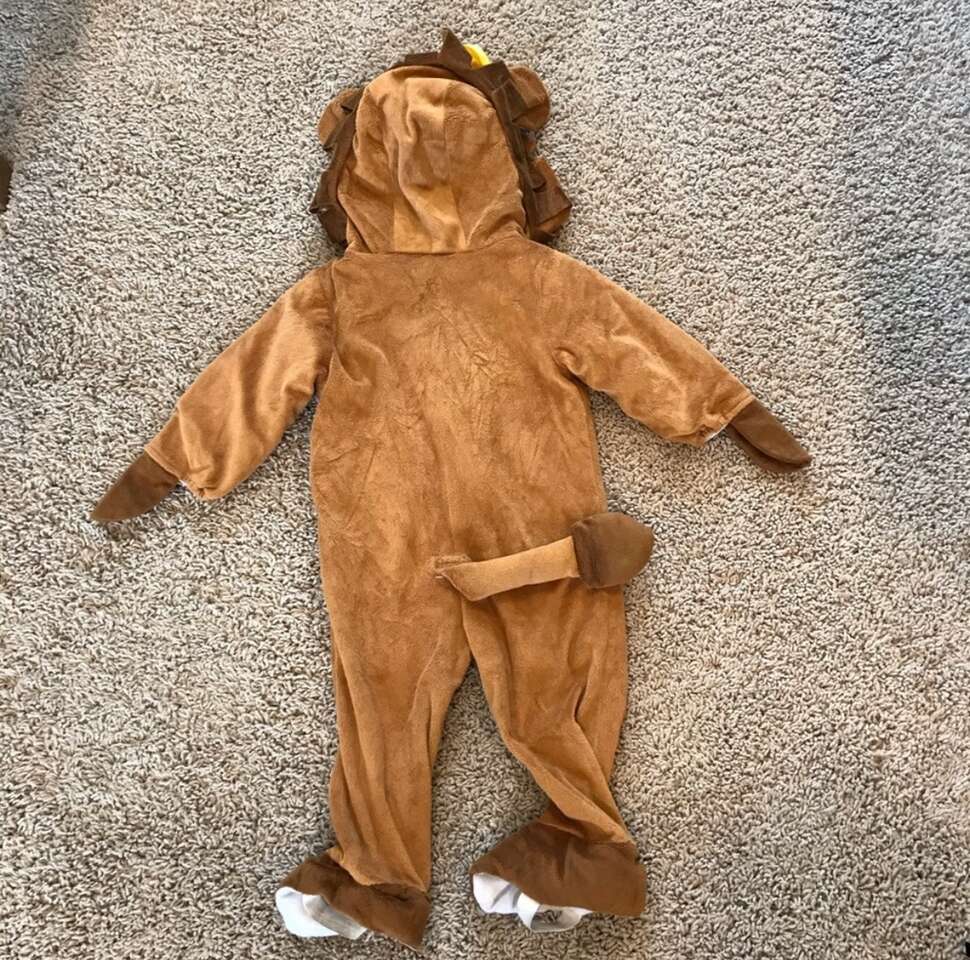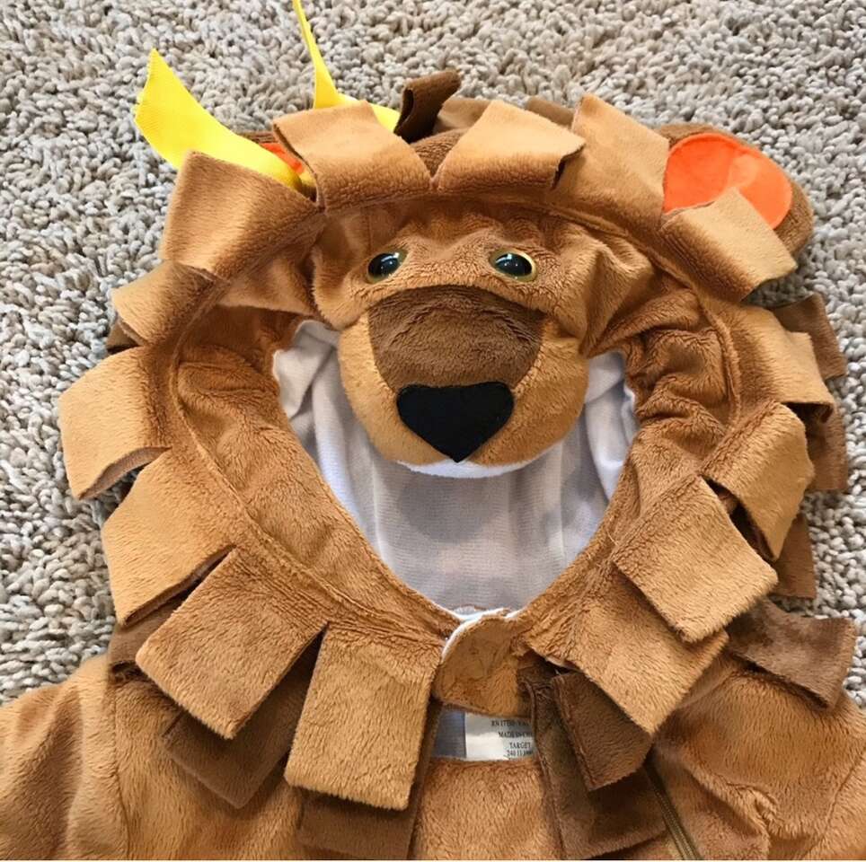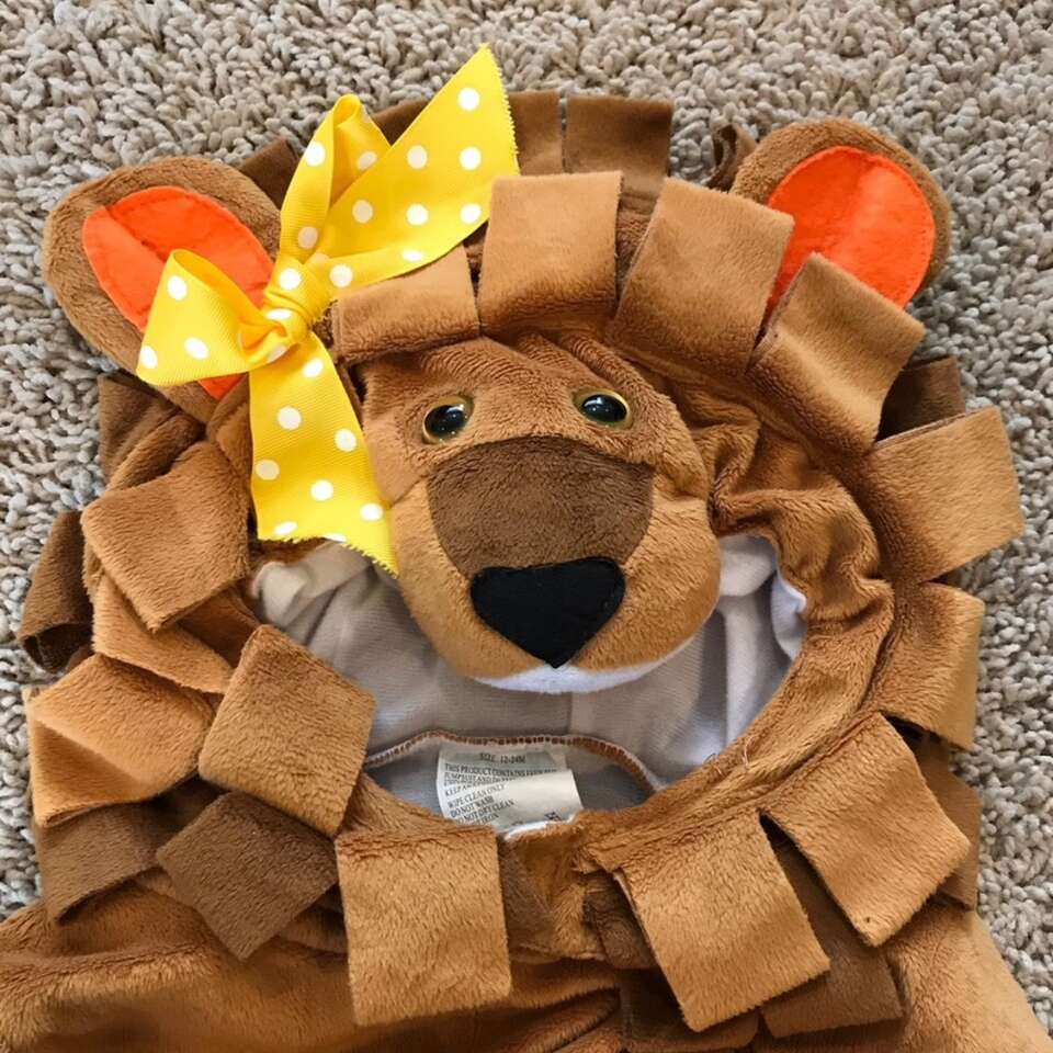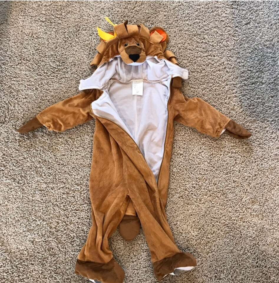 Preloved by another cute lion! Now can be taken off Lined for comfort Zipper closure Velcro at neck of head piece Ears, eyes, tail, lion mane Elastic to go over your child’s shoes/ paws on the feet Halloween Costume Party $20