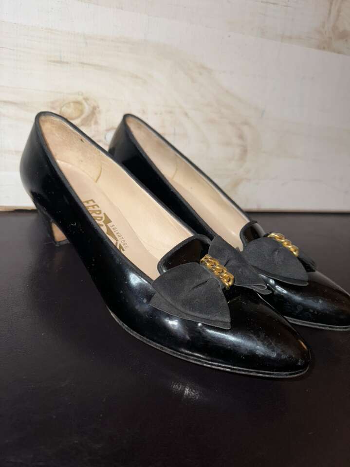 SALVATORE FERRAGAMO Black Patent Bow w/Gold Detailed Italian Heel asking $50 pickup in West Jordan.