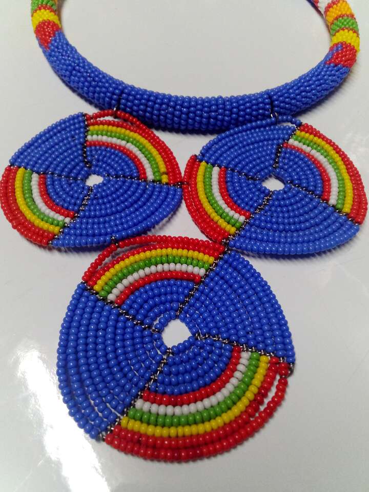 Add a touch of vibrancy to your jewelry collection with this beautiful handmade beaded necklace and bracelet set. The set includes a colorful necklace and bracelet, both of which were carefully crafted in South Sudan Africa. The unique multi-color design is perfect for women who love to make a fashion statement. This jewelry set is perfect for any occasion and is sure to turn heads. The set is made for women and is a great addition to any jewelry collection. The necklace and bracelet are both stunning and eye-catching, making them the perfect accessory for any outfit.