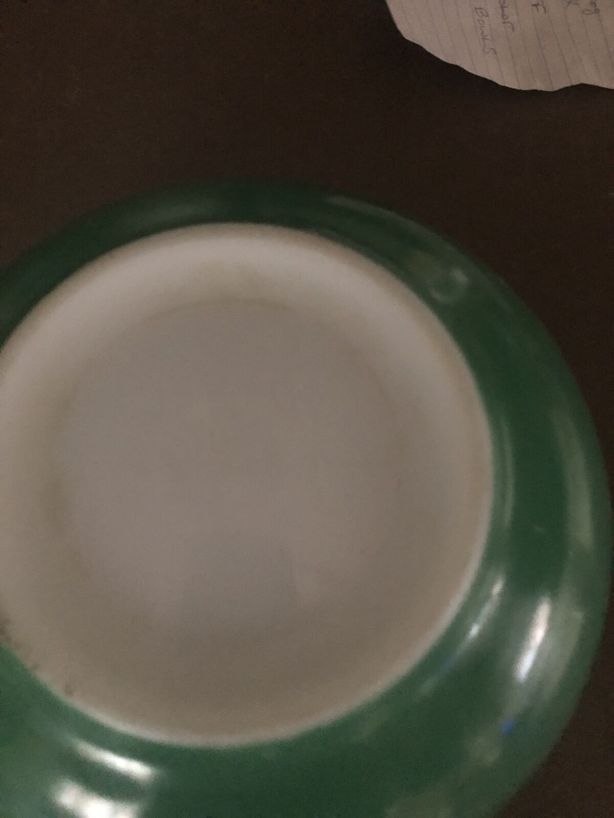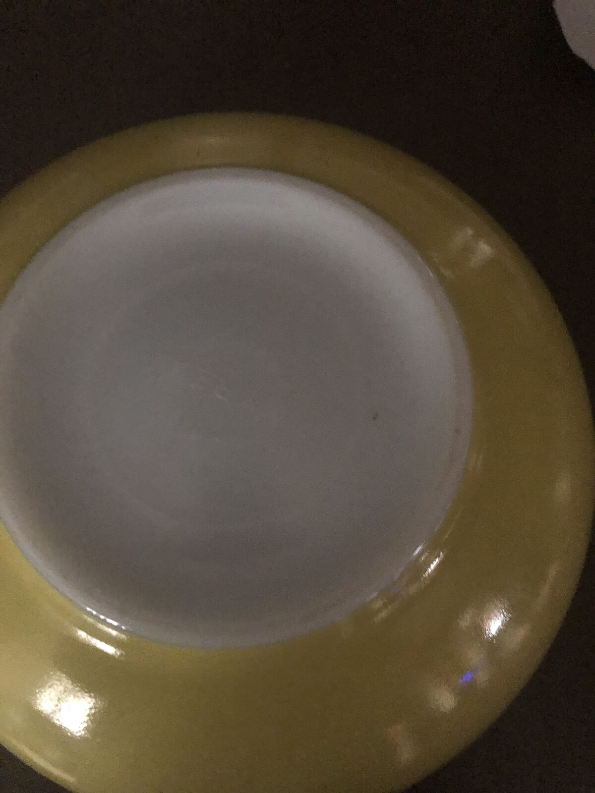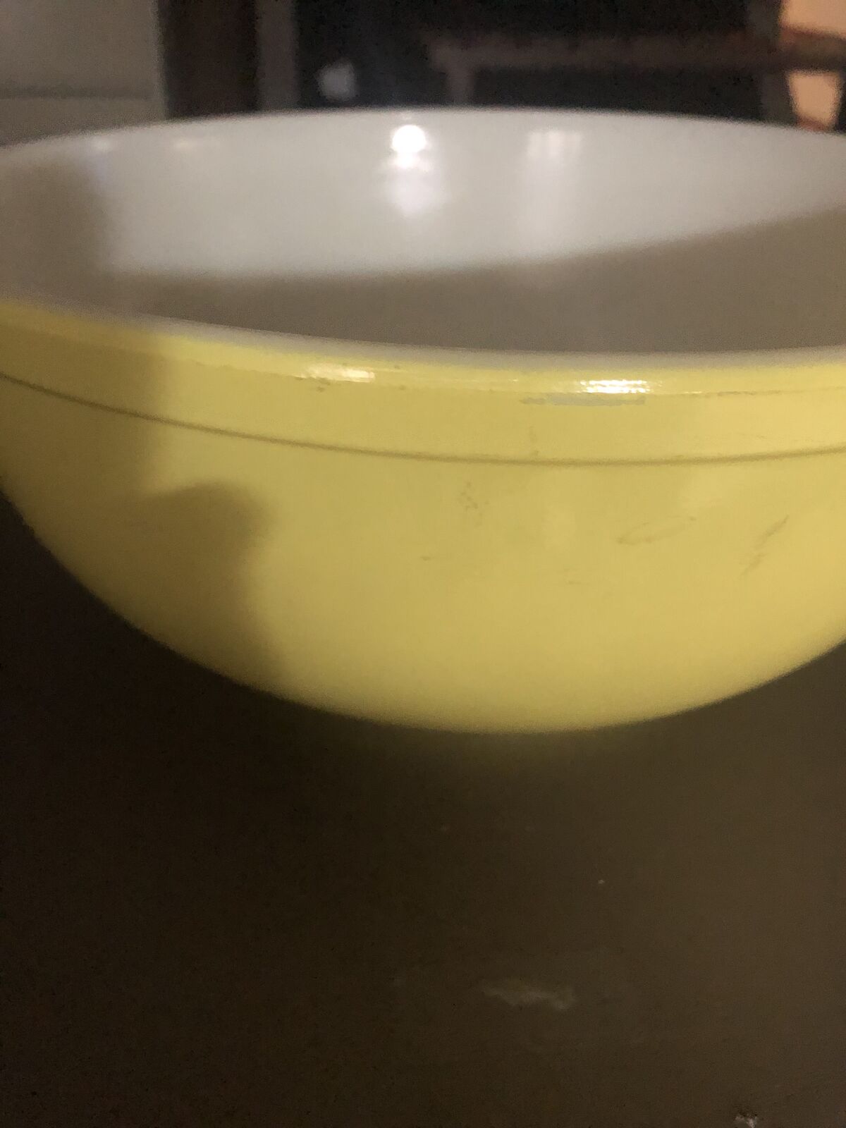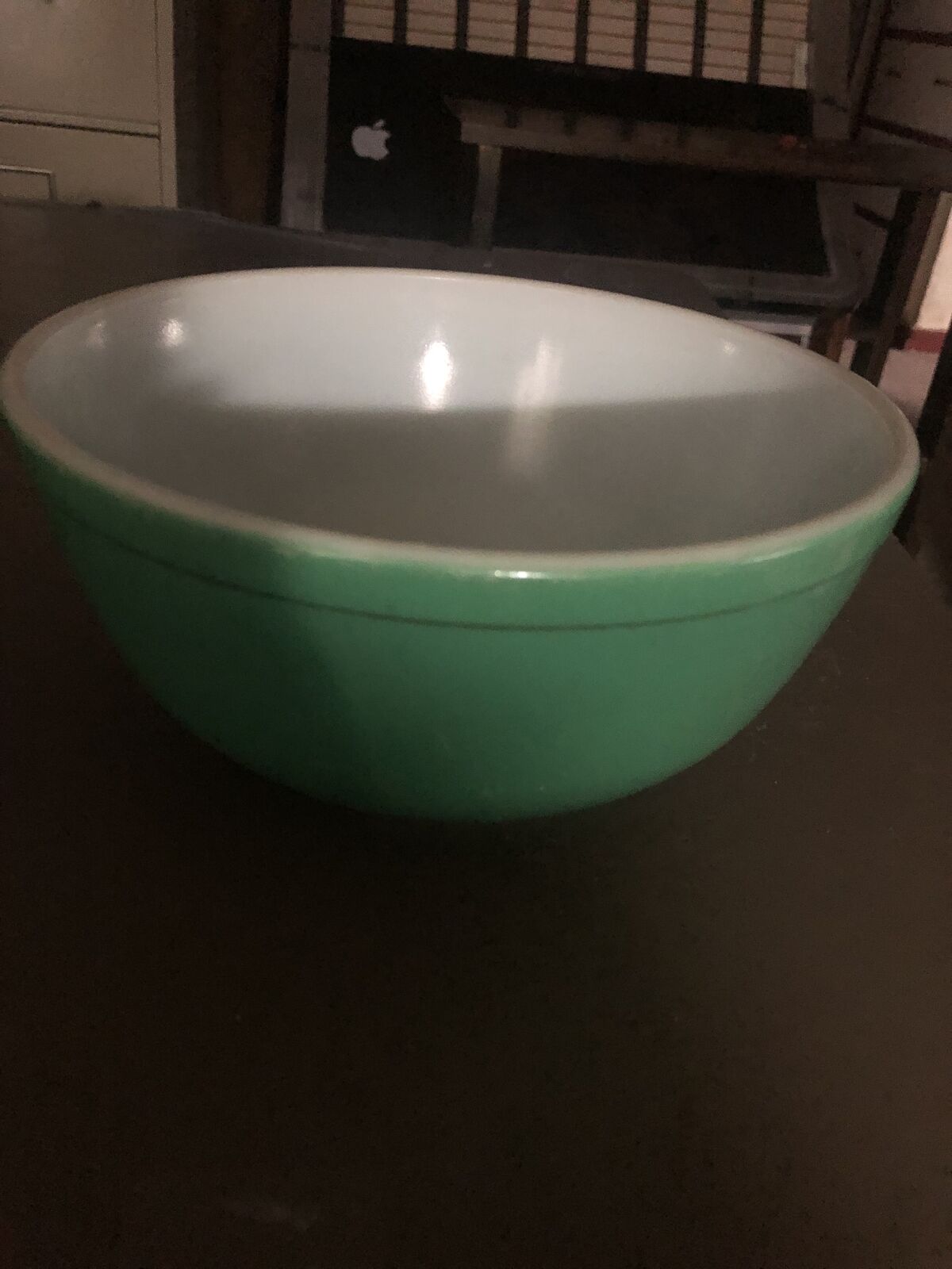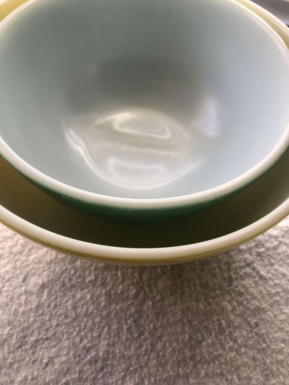 1940'S pyrex glass mixing bowls Green bowl 2 1/2 qt (8 1/2 inch) Yellow bowl 4 qt (10 inch)