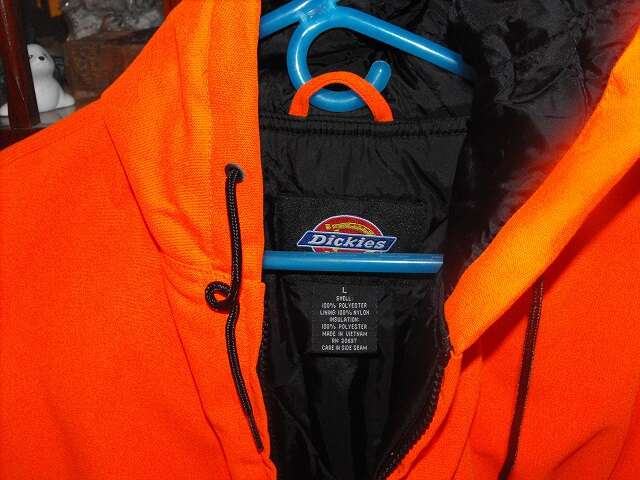 I have 2 of these jackets for sale For sale is a NEW Dickies Brand Insulated Jacket / Coat Blaze Orange / Hunter Orange Bomber Jacket style SIZE LG Quilted insulation and hood insulated also ONLY asking $30 Calls only 801-776-3379 ask for Linden NO emails, texts, or messages See my other Ads for more great items