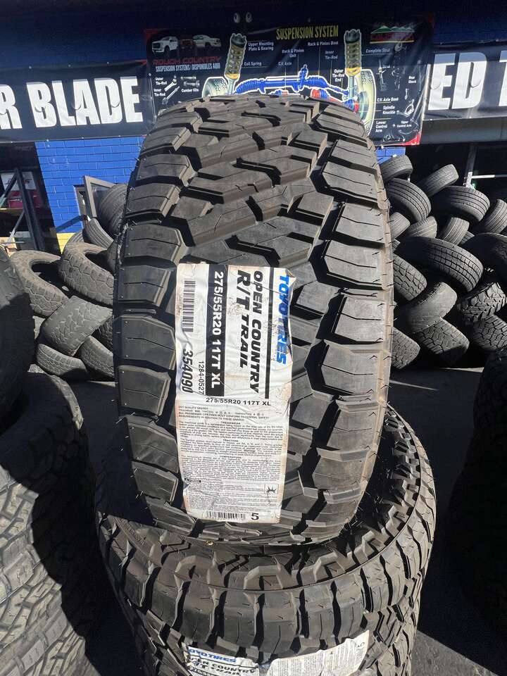 SET OF P275/55R20 TOYO OPEN COUNTRY R/T TRAIL ,WITH 45.000 MILES WARRANTY AWESOME DEAL . ASKING PRICE OF $1448.00 INCLUDES YOUR TAX, WE ALSO OFFER FREE INSTALLATION . HABLAMOS ESPANOL. WE CARRY OVER 200 SIZES AND CAN GET ANY MAJOR BRAND TIRES! WE ARE ALSO DOING, ALIGNMENTS, BRAKES AND SHOCKS. FINANCING OPTIONS AVAILABLE. NO CREDIT CHECK!. NOW OPEN CALIFORNIA TIRES 2.. CALIFORNIA TIRES & WHEELS 399 S STATE STREET OREM UT 84058 (801)691-0675