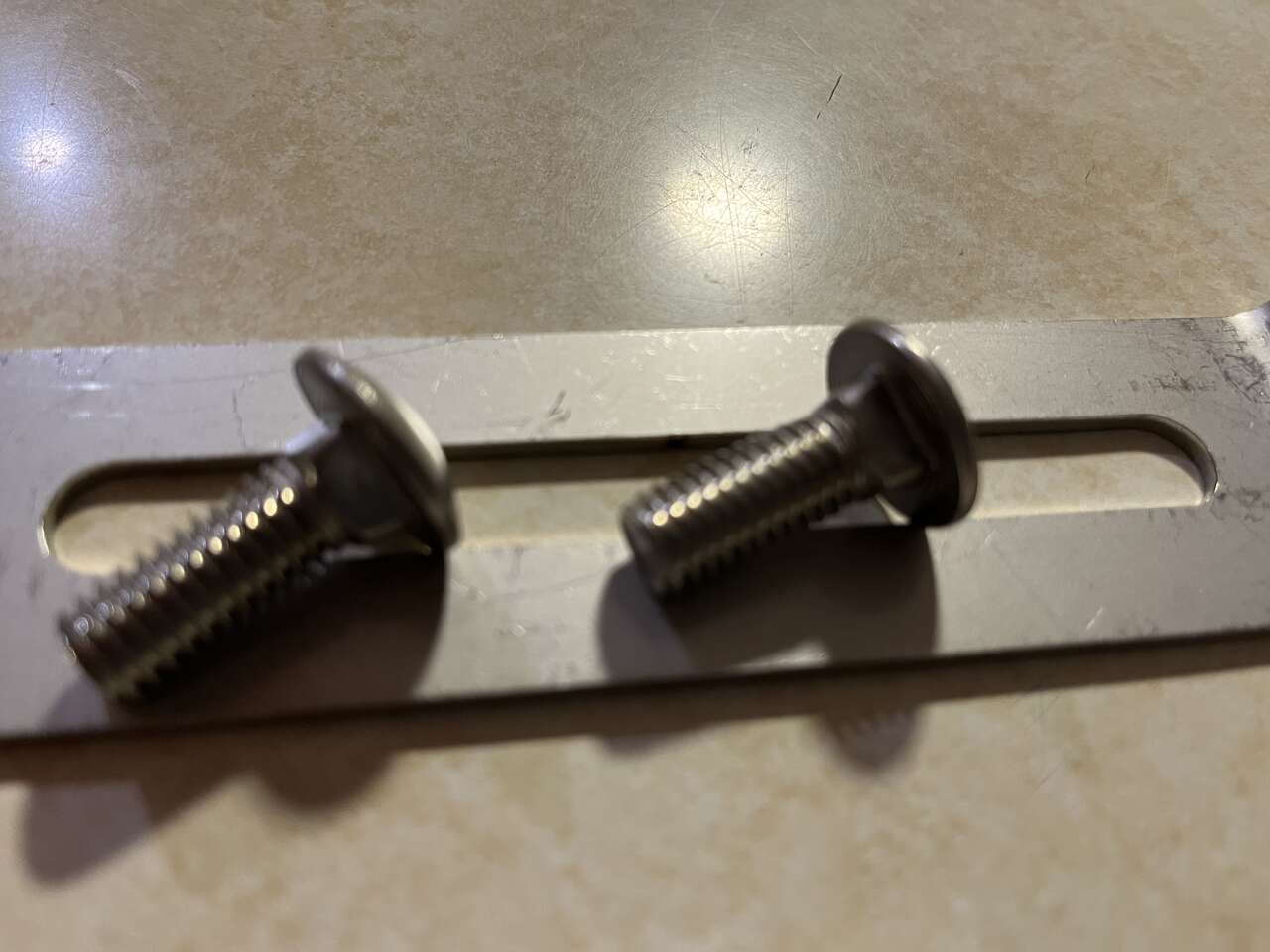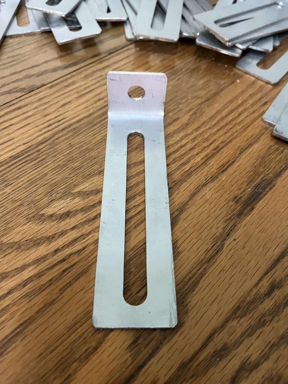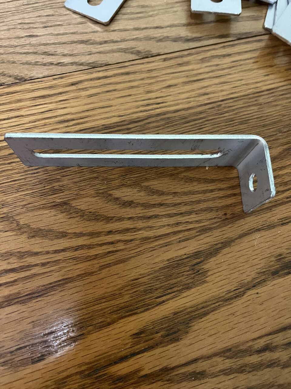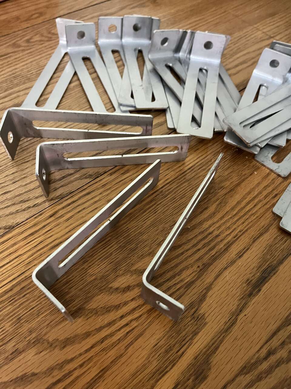 Venmo25 new aluminum slotted right angle brackets. The long leg measures 5-1/2" with a 4-1/4" x 3/8" slot. The short leg is 1-1/4" long with a 3/8" hole in the center. The brackets are 1-1/2" wide and .09 thick. They are very sturdy and strong. I will also give you (25) 3/8-16 x 1" carriage bolts with each 25 pack of brackets purchased. (only 50 left)