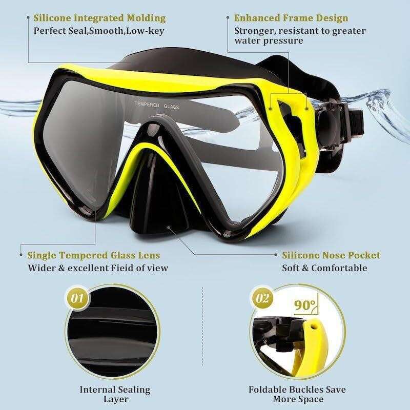 Kesida Snorkeling Set for Adults, Yellow - S/M