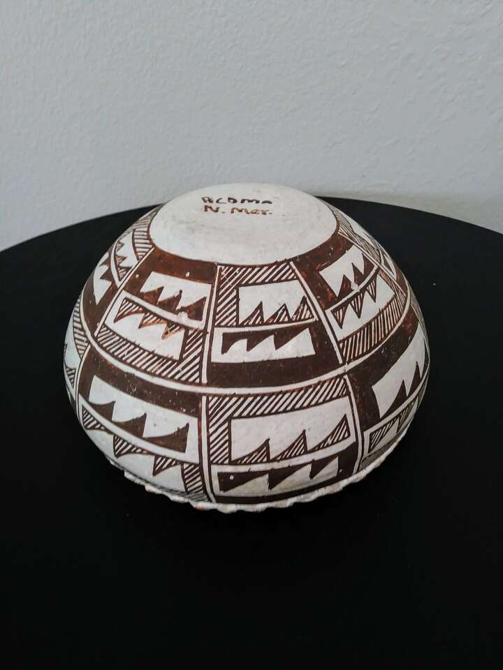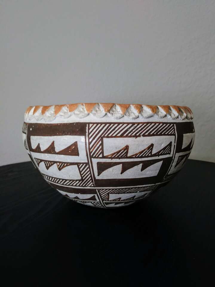 Vintage/antique Native American Indian Acoma New Mexico pottery bowl with pie crust edge 7" wide 4 1/4" tall