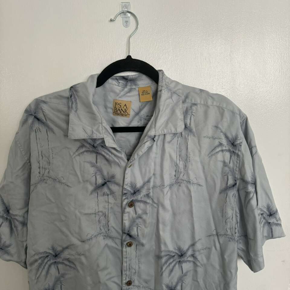 Jos A Bank 100% Silk Tropical Palm Tree Shirt L Hawaiian