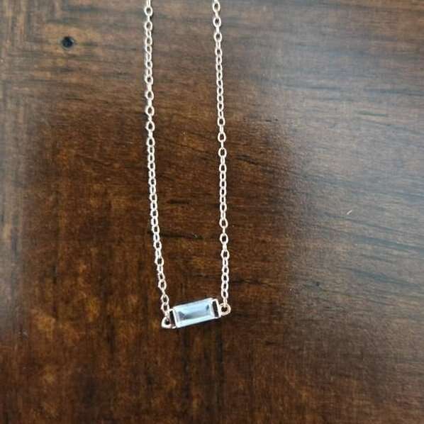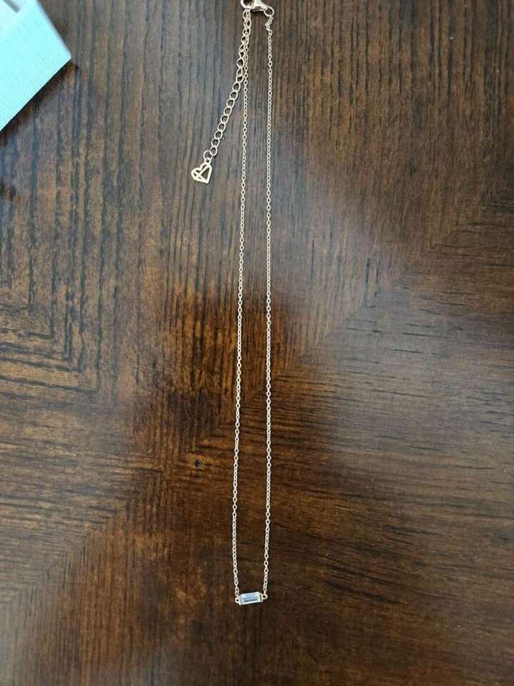Never worn. QZ bagette on fine (appears to be) rose gold chain