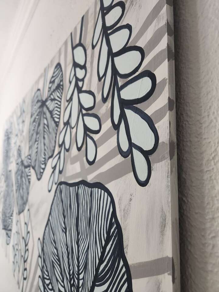 This is a very large original painting. The artist painting it in a way that it can be hung horizontal or vertical!