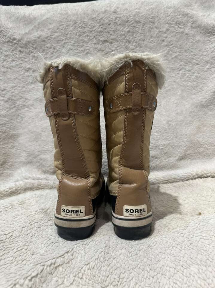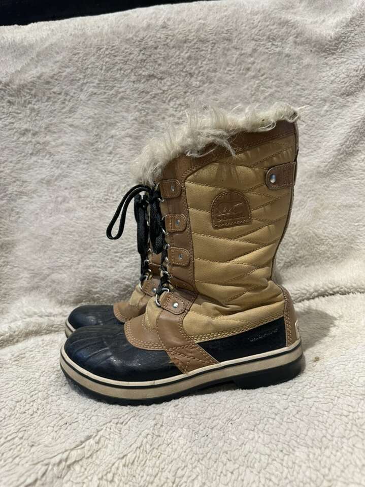 Sorel youth size 6 waterproof winter boots. These have the beige quilted uppers with a black foot bed and lace up the front with fur trim on top. These are an excellent condition, see photos for details. I take cash or Venmo, but cash is preferred. Text is best. 801-201-4446.Check out my other ads for additional sizes and styles.
