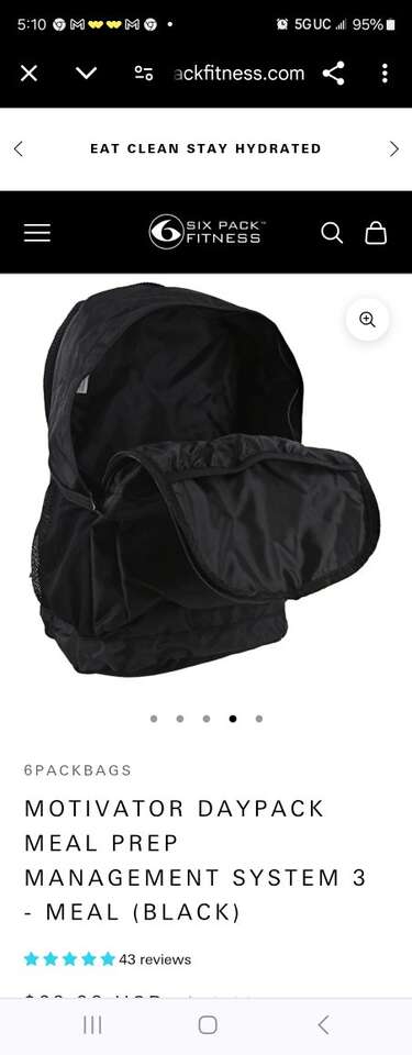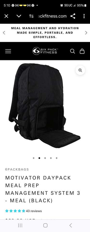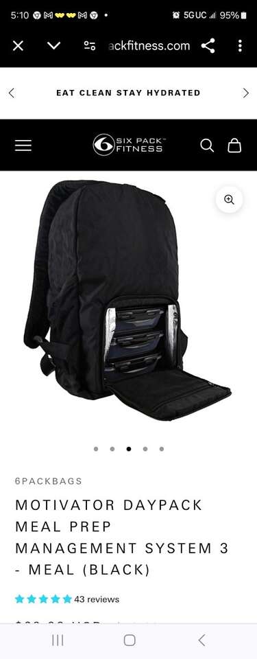 The Motivator Daypack holds up to 3 meals and it’s equipped with 2 - small Freezer Gel Packs , 3 - 20 oz. Sure Seal Meal Prep Containers, 1 - Medium Sports Nutrition Supplement Container. It's everything you need to travel fit.