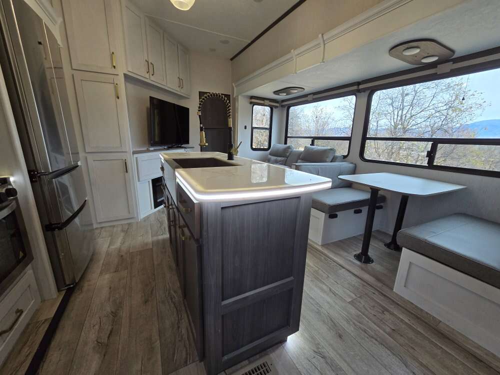 This is the top of the line Platinum model that cost $106,000 new. Its in great condition and everyting works. Has a solar system, auto leveling, led everyring, 3 slides, residential fridge, 2 bathrooms. Could sleep 8 easily. Call/Text with any questions. I know we are getting to the end of the season so im listing it 15k cheaper then anything i could find across the US.