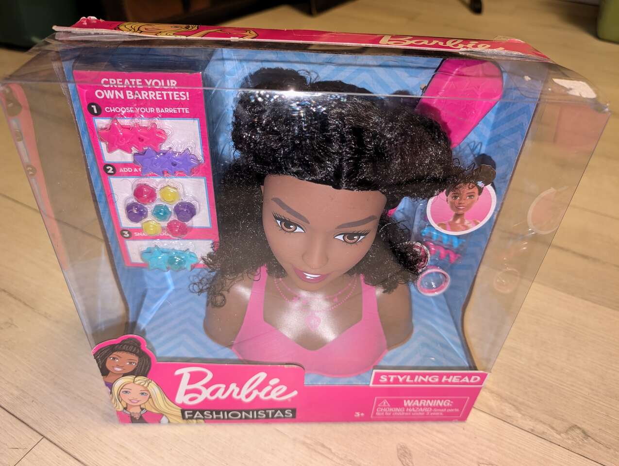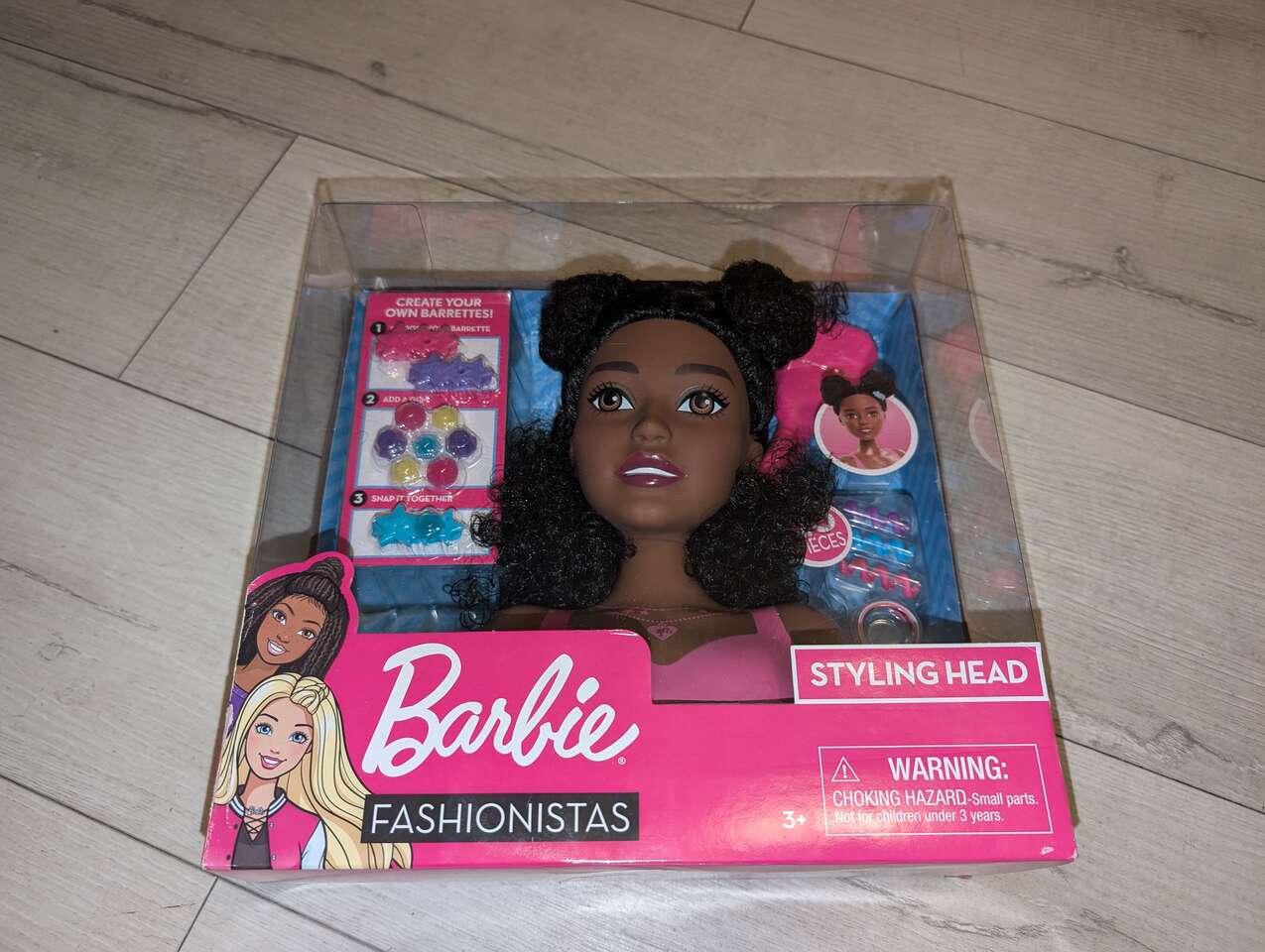 Brand new in box with no flaws. Clean. Smoke free home. See al pictures. Barbie Fashionistas Styling Head with 20 Pieces Large Size 8-inch by Mattel