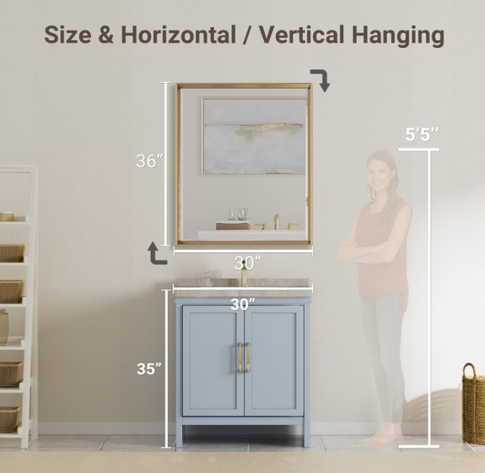 PayPalBathroom Mirror Beveled Edge, Gold Framed Rectangle Bathroom Vanity Mirror, Anti-Rust Brushed Brass Metal Frame Wall Mirror Vertical/Horizontal