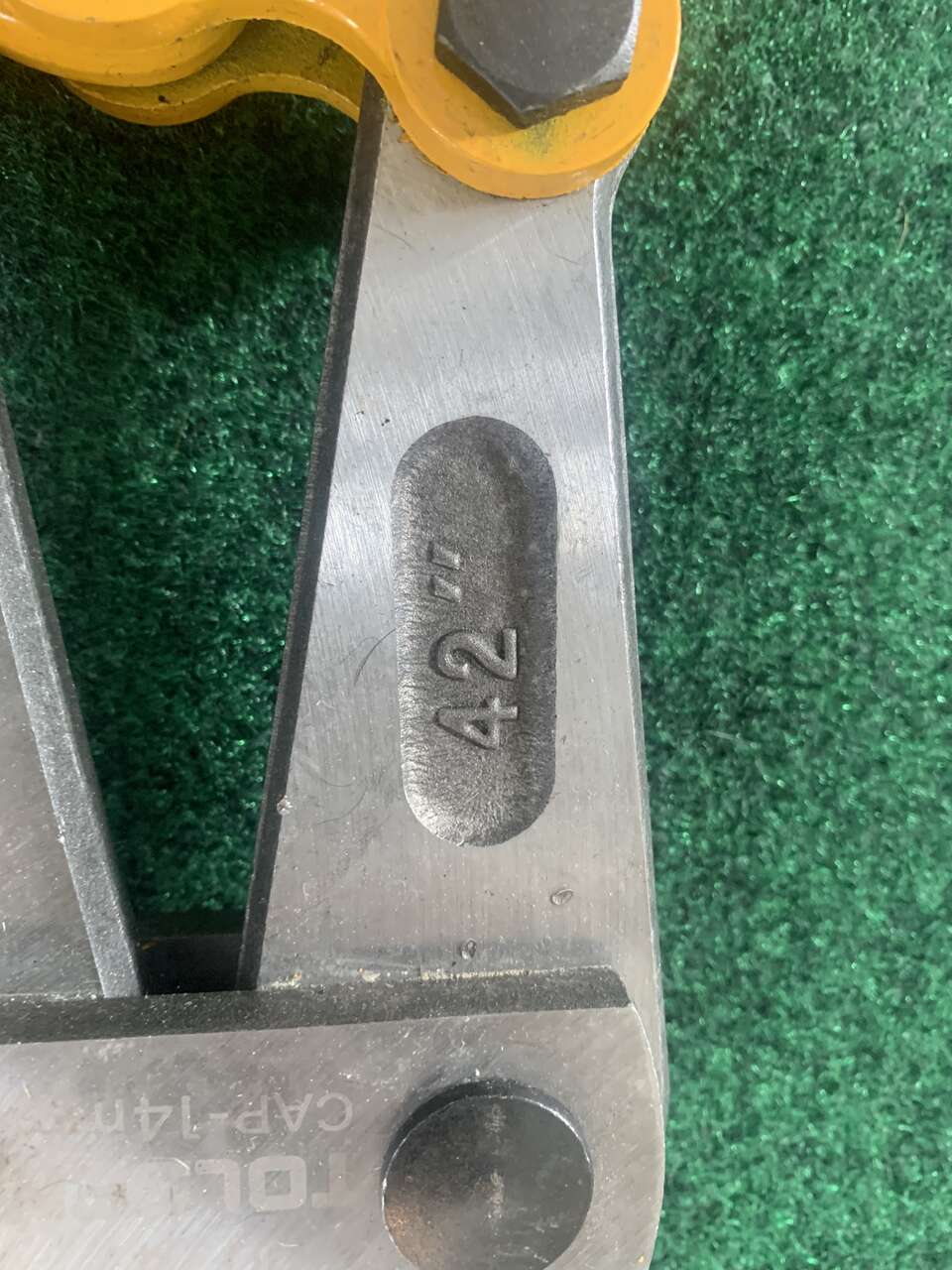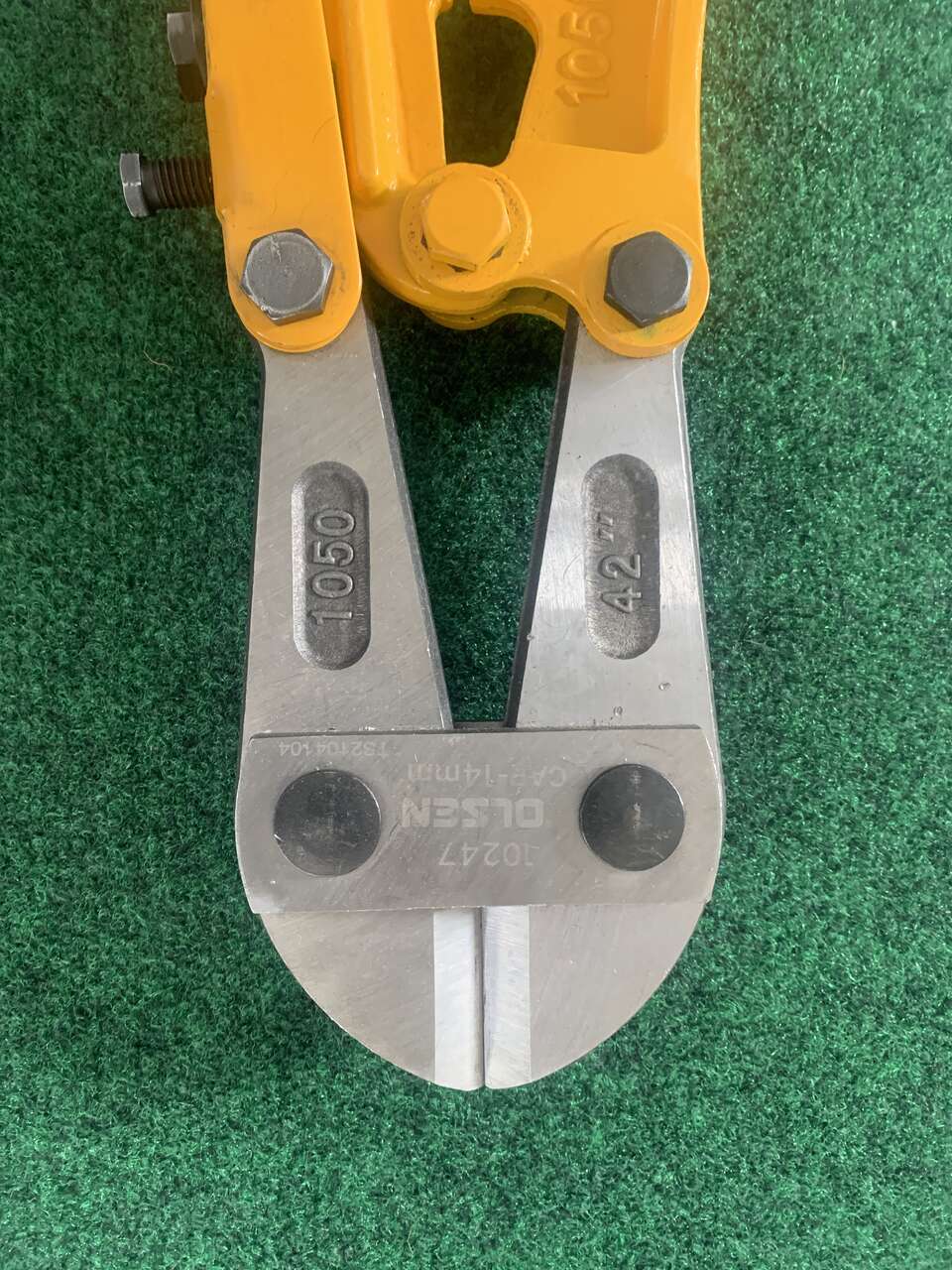 olsen industrial 42 inch bolt cutter is an ideal tool for cutting rods, rivets, locks and chains. The adjustable bolts always ensure that the blades are properly aligned. Hardened steel cutting head cuts a steel rod up to 9/16" (1.4 cm) thick.Features:Drop forged hardened steel bladesCompound cutting action requires less effort Tubular steel handles with cushioned Non-Slip thermoplastic grips Adjustable and replaceable jaws Cuts bolts, chain, threaded rod, cable wire and moreSpecifications:Brand: TolsenModel: 10247Made of: steelThermoplastic gripsCutting ability up to 9/16 inch or 14mmLength: 42inch or 1050mmWeight: 16.5lb or 7.5kg
