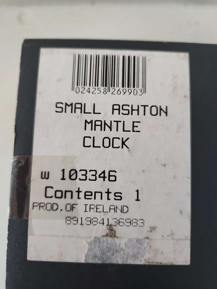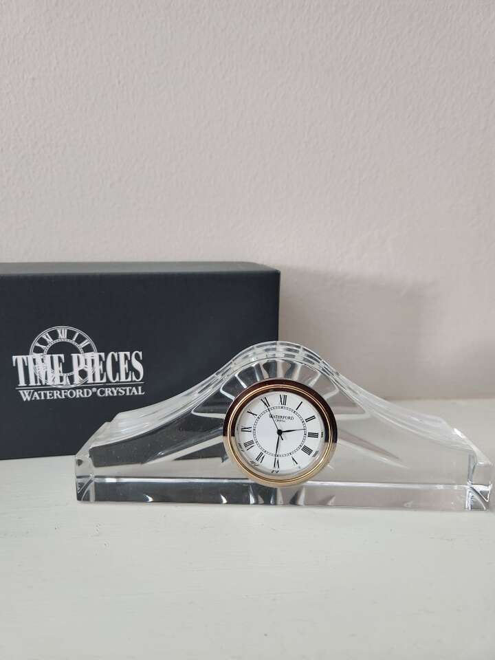 Genuine Waterford crystal small Ashton mantle clock. Made in Ireland. Like new in original box. Uses size 377 watch battery. 6.5" wide