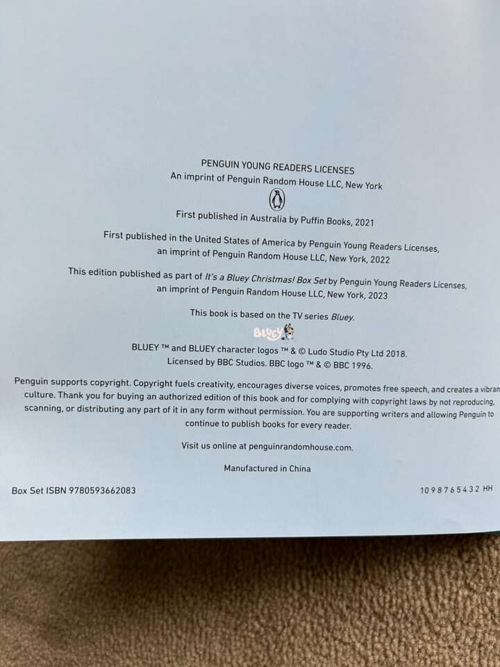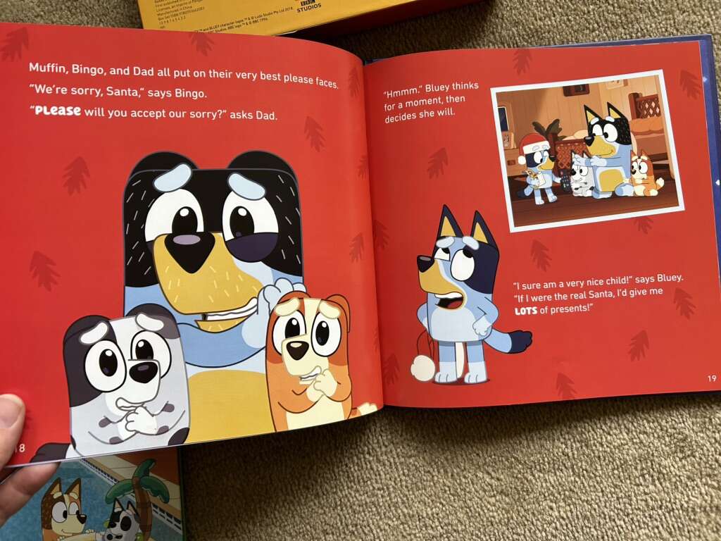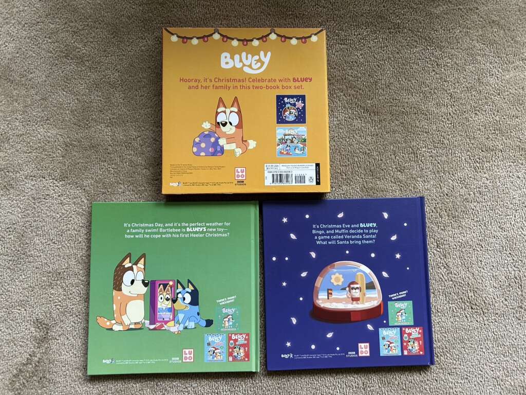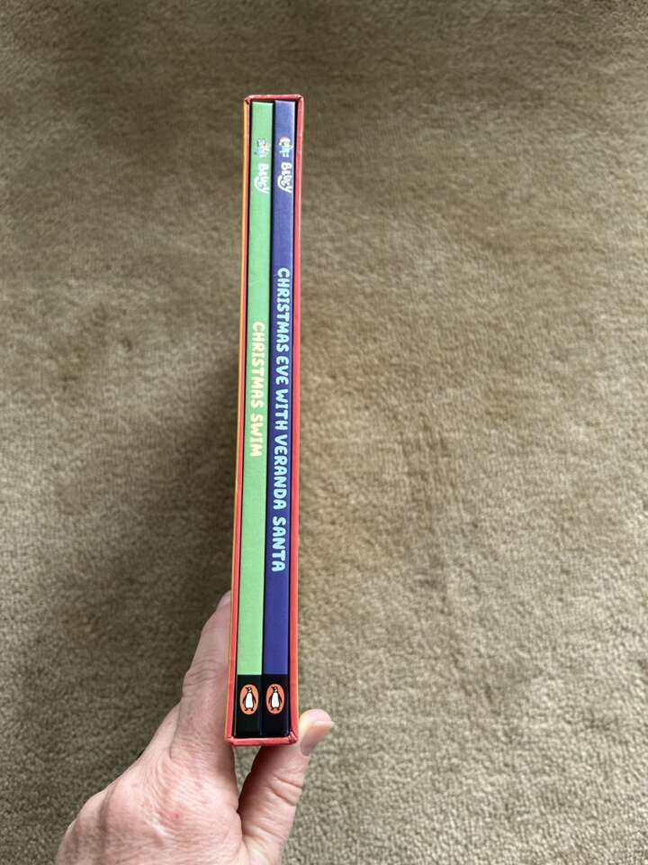 It's a Bluey Christmas! Two-Book Box Set: Christmas Swim and Christmas Eve with Veranda Santa. Colorful hardback books based on the beloved show in a sturdy slipcase. Excellent condition. Missing ornaments. Text only. Cash or Venmo.
