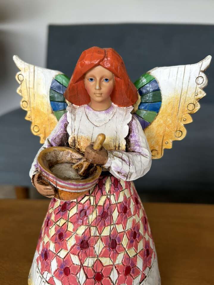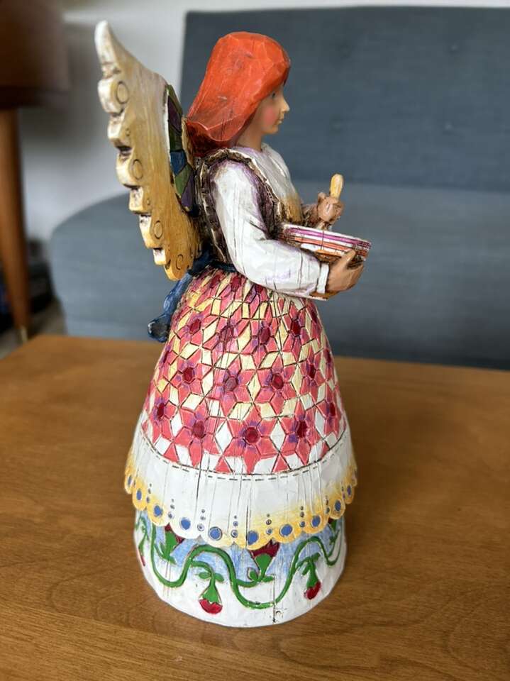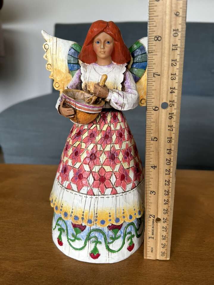 Jim Shore Heartwood Creek "Angel of Contentment" collectible figure, 2002. Hand carved and painted resin, 9” tall. Beautiful colors & detail, angel figure holding spoon and mixing bowl. Excellent condition. Text only. Cash or Venmo.