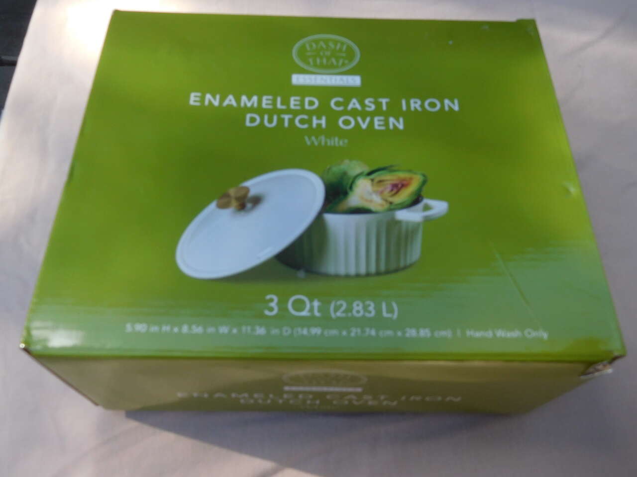 White Dutch Overn - enameled cast iron - 3 qt. - new and in the original box.