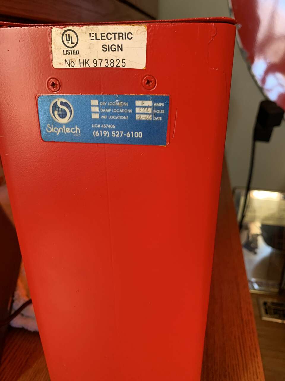 VenmoThis is a 1970s lighted outdoor sign. 16" tall 23" wide (including transformer) x 5" deep. Frame is repainted and made of alluminum, the advertising portion is a transculent canvas like material. No plastic on this one at all. The manufacturers tag looks to be from 197? Has an on and off switch. Runs very quiet with no flickering.