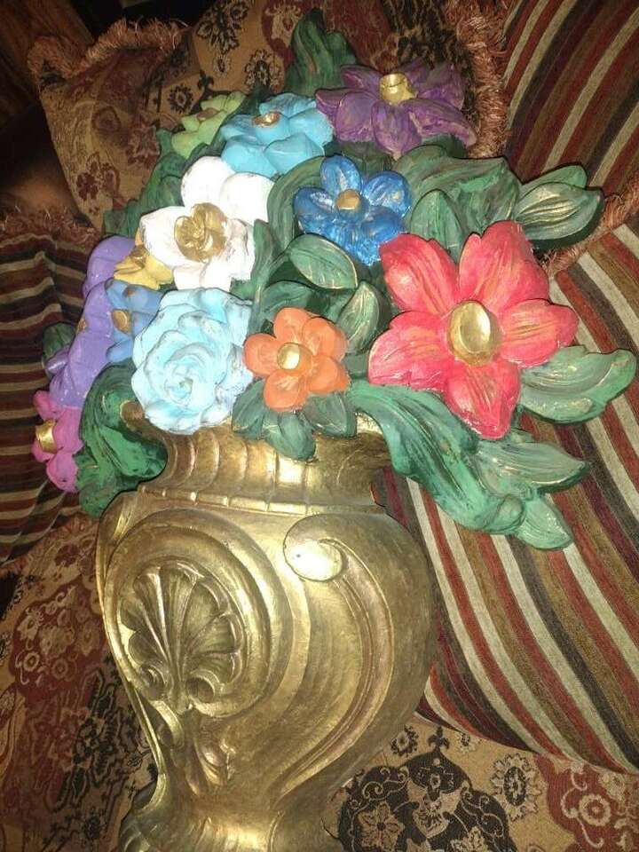 Syroco Floral Basket Wall Plaque - Add a bit of retro elegance to your wall with this pretty wall decor featuring a latticework basket holding different types of flowers. 40" high X 25" wide See pictures for condition.