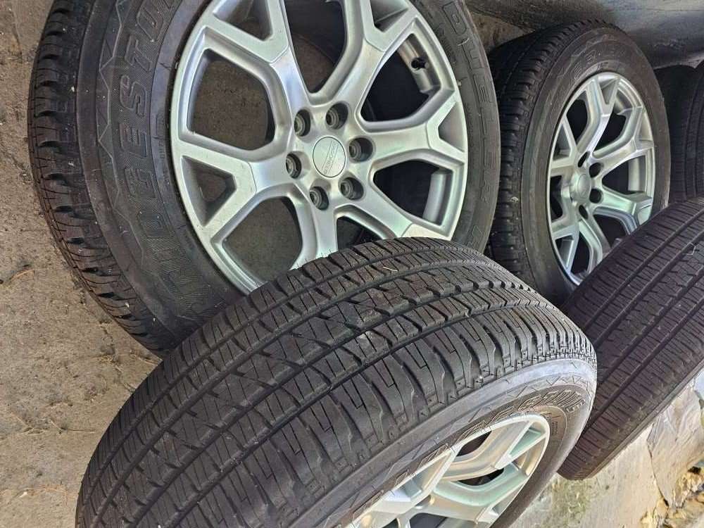 Brand new wheels and tires off a new Jeep Wagoneer. The tires are 275/55r20 Bridgestone Dueler H/L. The wheels are in great shape with no curb rash. 6 x5.5 bolt pattern, so they will fit half tone Chevy to. not even 100 miles on them. $1200