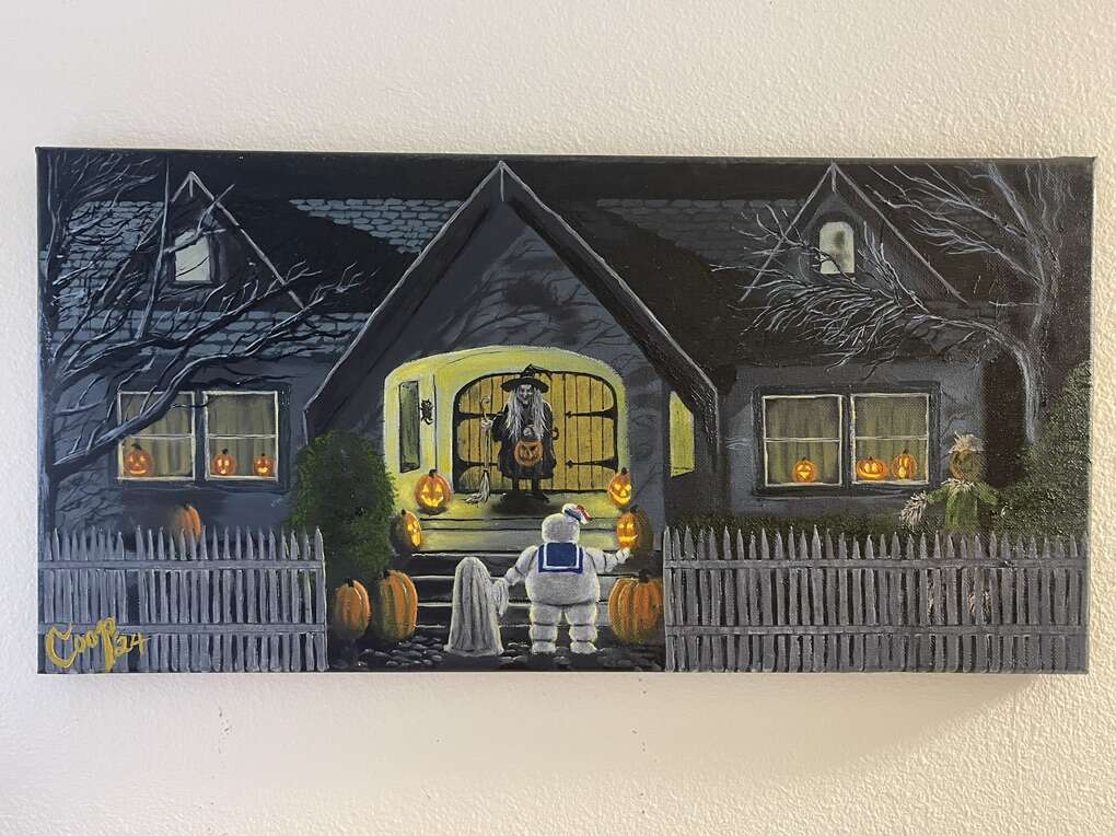 Get this Halloween themed oil painting just in time for the holiday. Contact me if you are interested in purchasing it. I could also ship if for an additional fee if you would rather receive it that way. If you want an a printed version of this I can get it printed on canvas for you for a lower price. I am open to doing custom pieces as well. Feel free to message me for more information. Find my IG to see more! @jamesterlingcoop