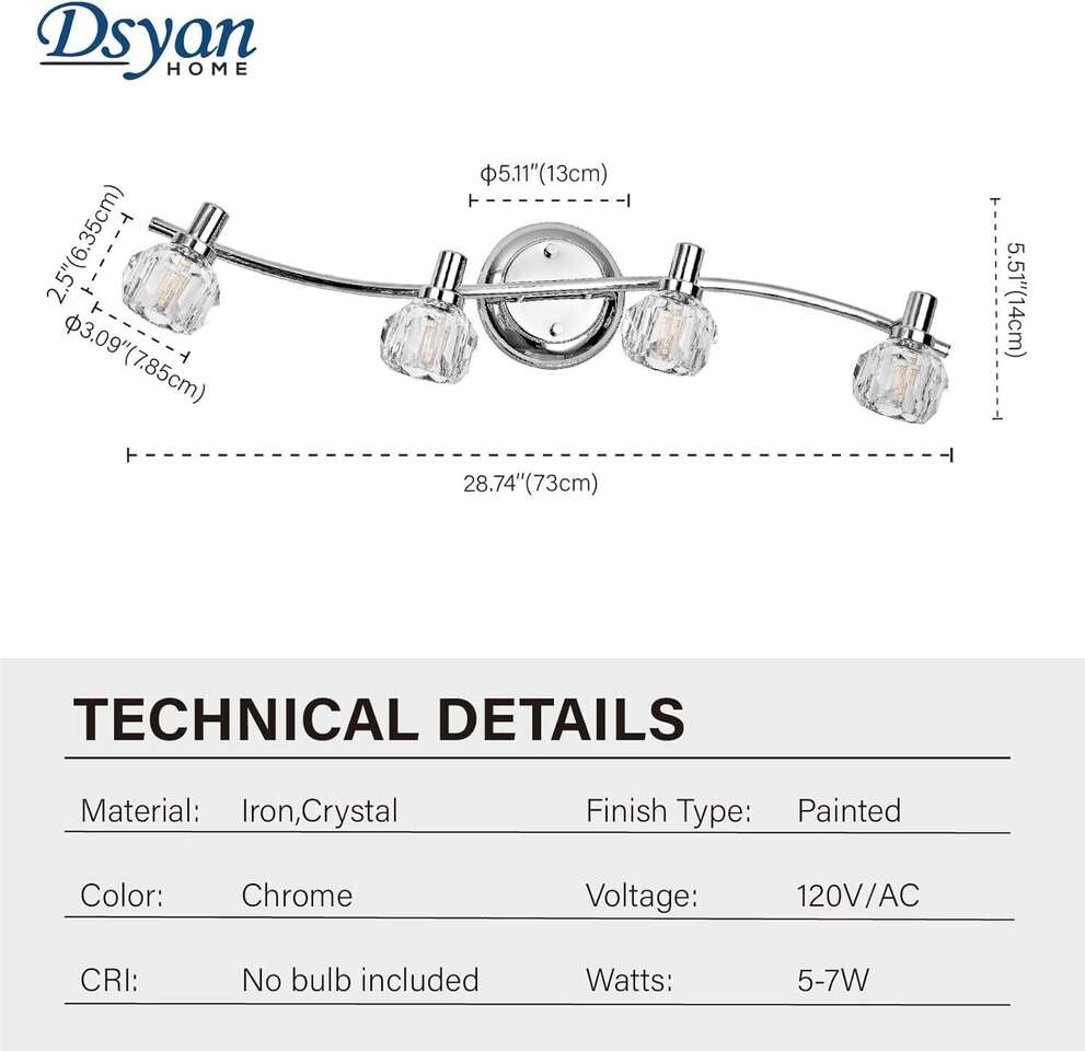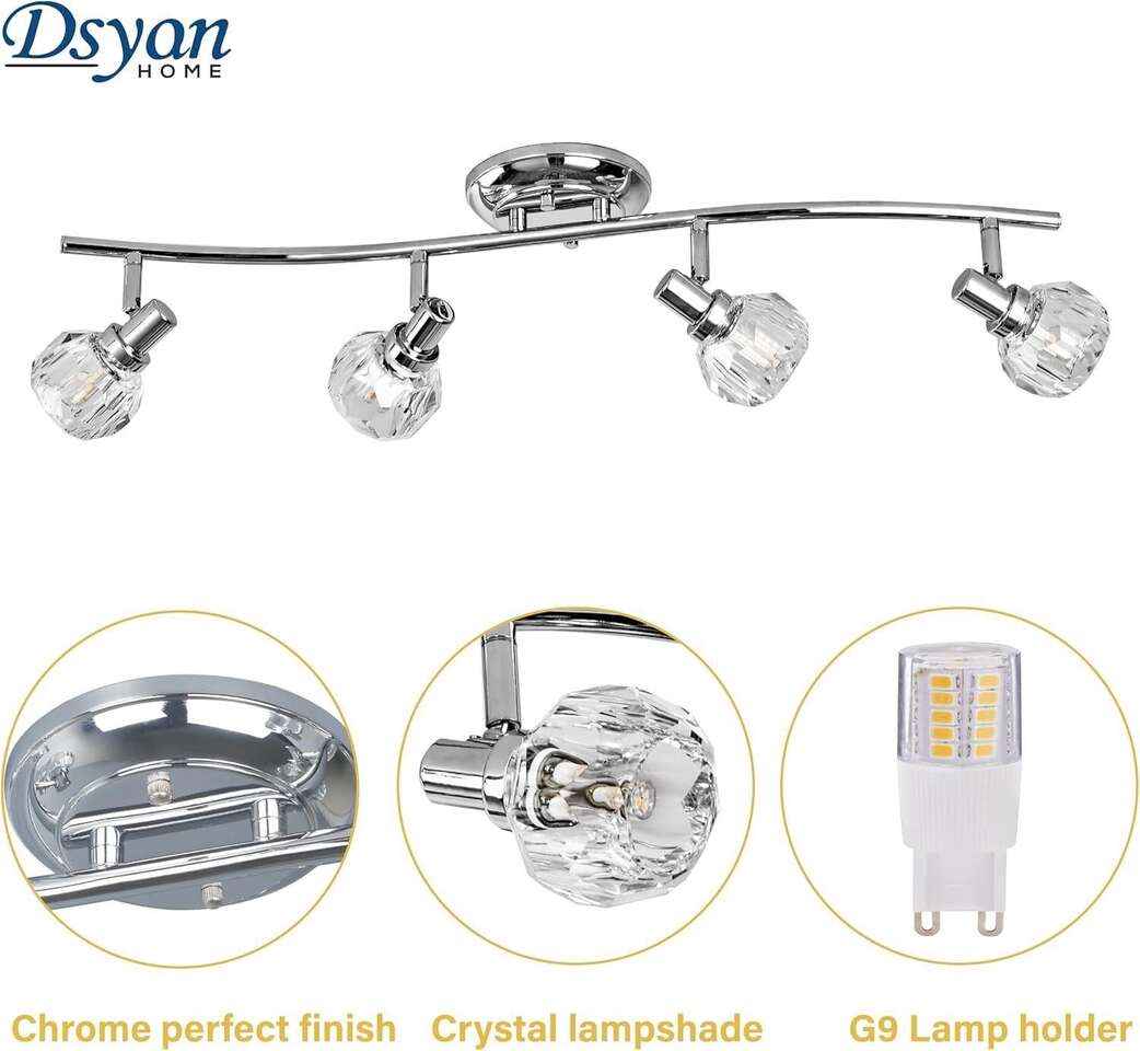 Classic Crystal Design : The 4 ways track lighting kit uses classic crystal element in the light head high light transmission and high purity.