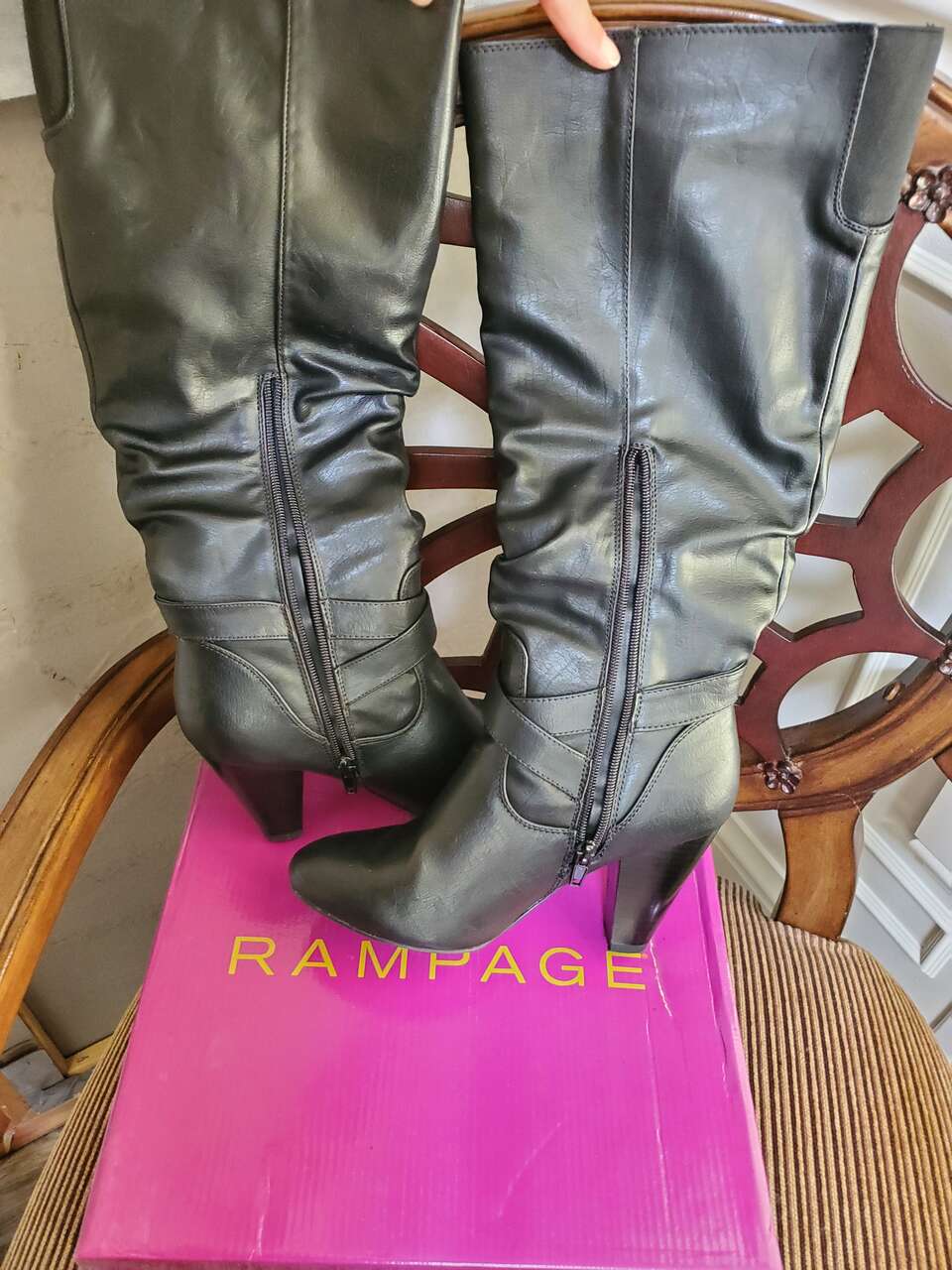 Rampage Womens Black Boots, Size 6.5, 3.5 inch heel. Elastic on back calf for additional expansion. Only worn inside. I broke my ankle and these no longer fit comfortably. Draper. Cash only.