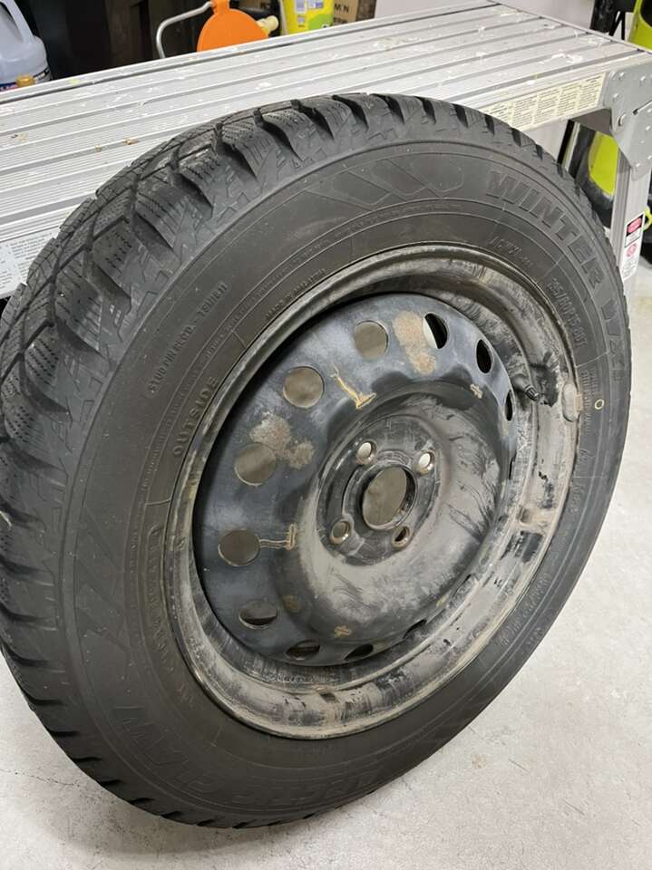 These 4 tires and wheels came off my 2004 Honda civic LX. They are winter tires Artic Claw WXI 195/60 R15 mounted on an OEM rim 15” with a stock bolt pattern of 4 x 100.