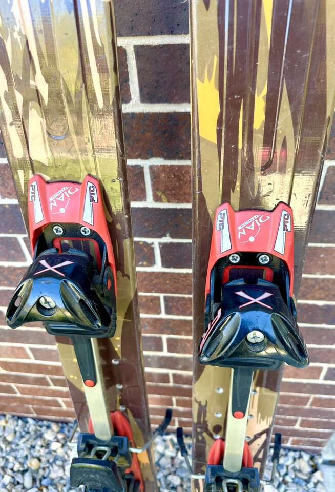 VenmoLine Prophet 170 CM fat powder all terrain twin tip skis for sale. Fantastic Skis in good condition. The bases are smooth with no scrapes or scratches. Equipped with Free Ride Diamir Bindings. The under foot is approximately 4 inches wide. See photos. Tons of fun left in these skis. Will also throw in a bag of Black Diamond climbing skins. Call or text with questions