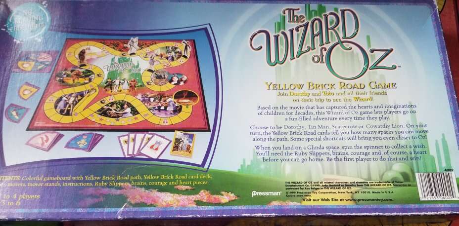 1999 Wizard of Oz Board Game. Almost complete, but the Scarecrow ran off with 2 plastic mover holders 🤷️ Dorothy, Tin Man & Cowardly Lion stayed to play. Contents are in excellent condition. Box has wear. $6