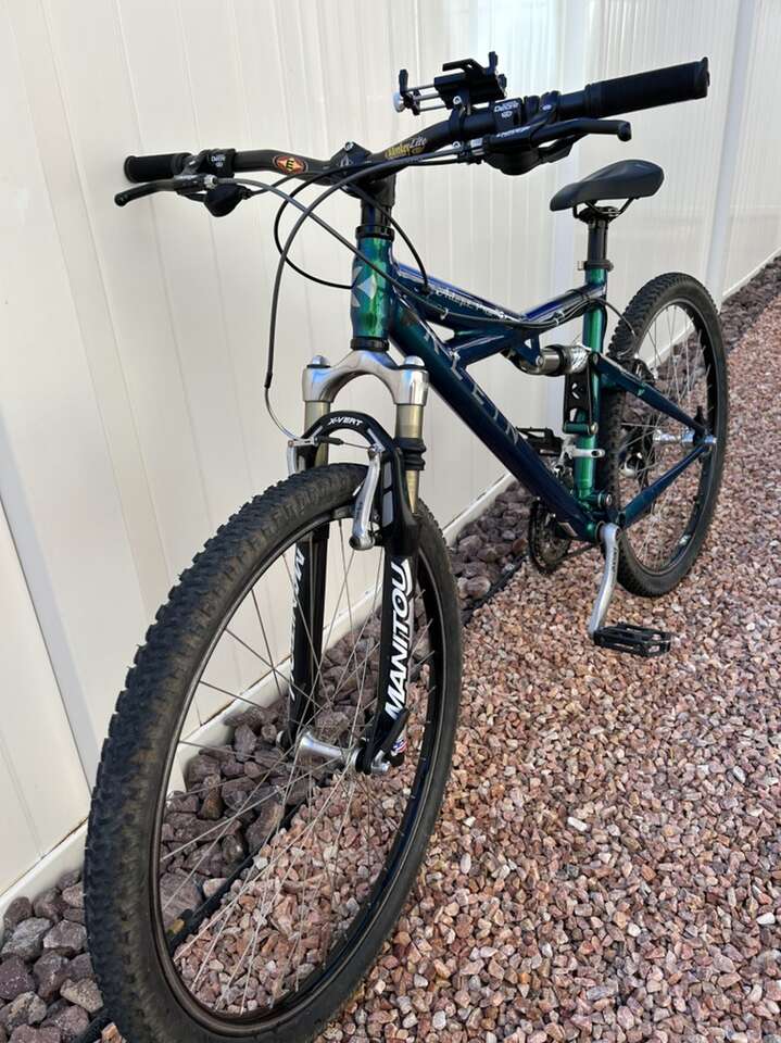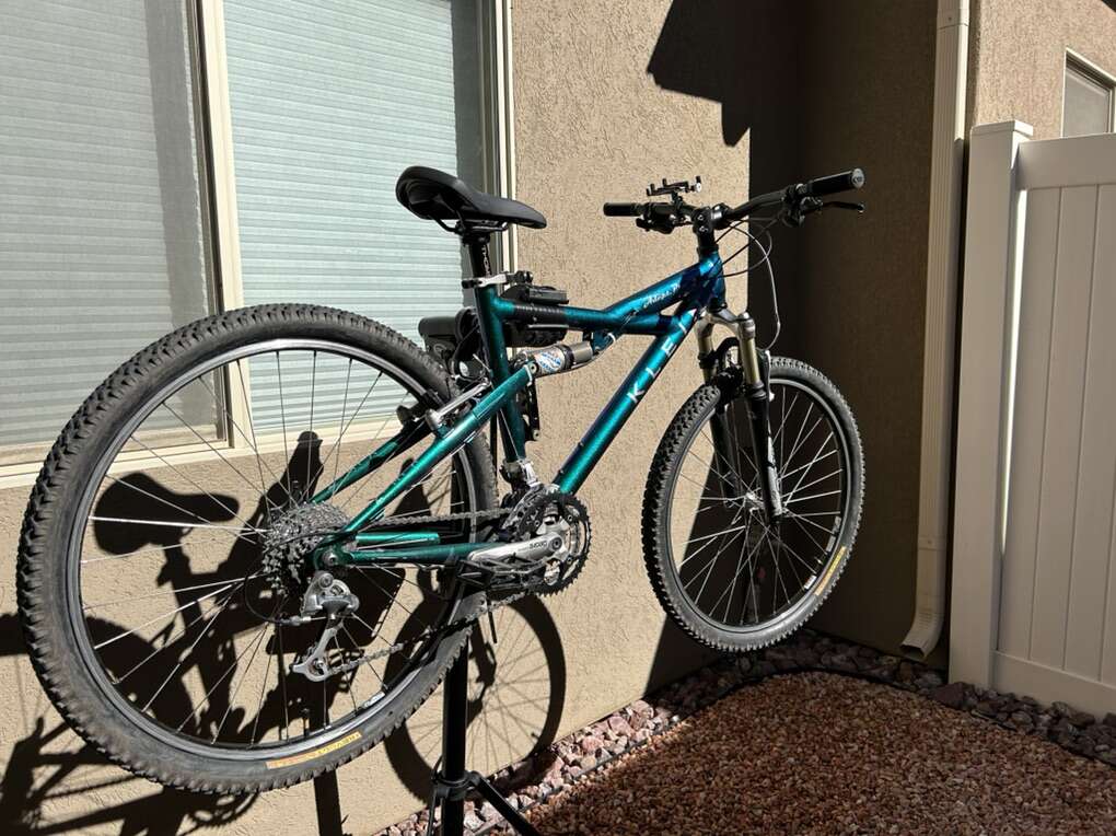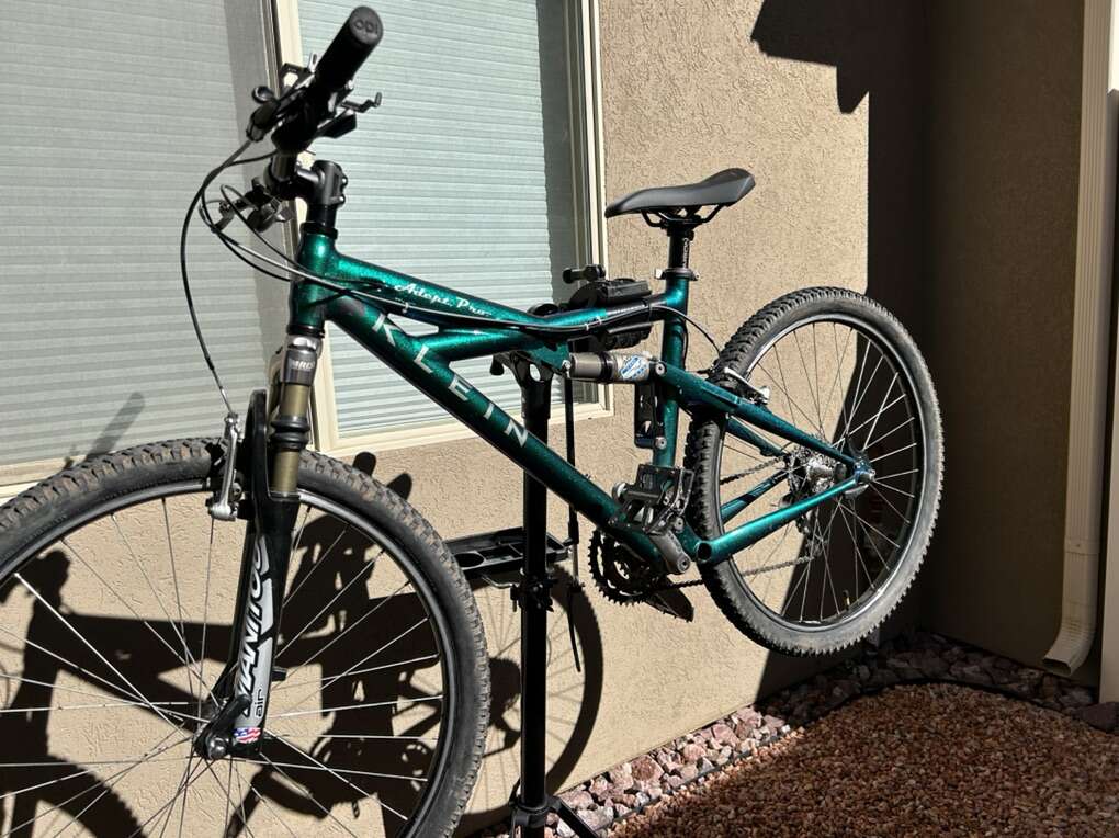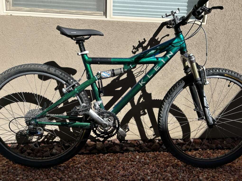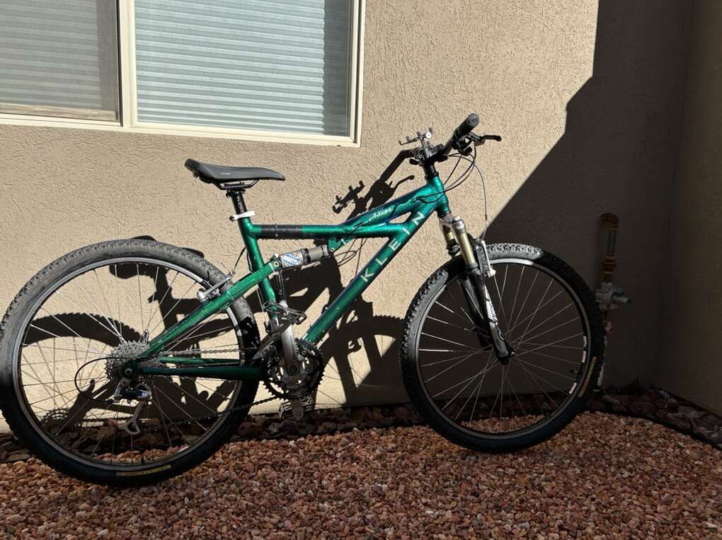 Klein Adept Pro full suspension bike for sale. Custom built with two-toned paint in Seattle in ‘97. I inherited it this month from my uncle who used it for both city commute and trails. Ridden on paved trails a few times, and it is very comfortable. Very fun on trails with the full suspension! Currently has hydraulic brakes but it does have the brackets in place to allow for converting to disc brakes. I have multiple bikes and simply dont need this one in addition.