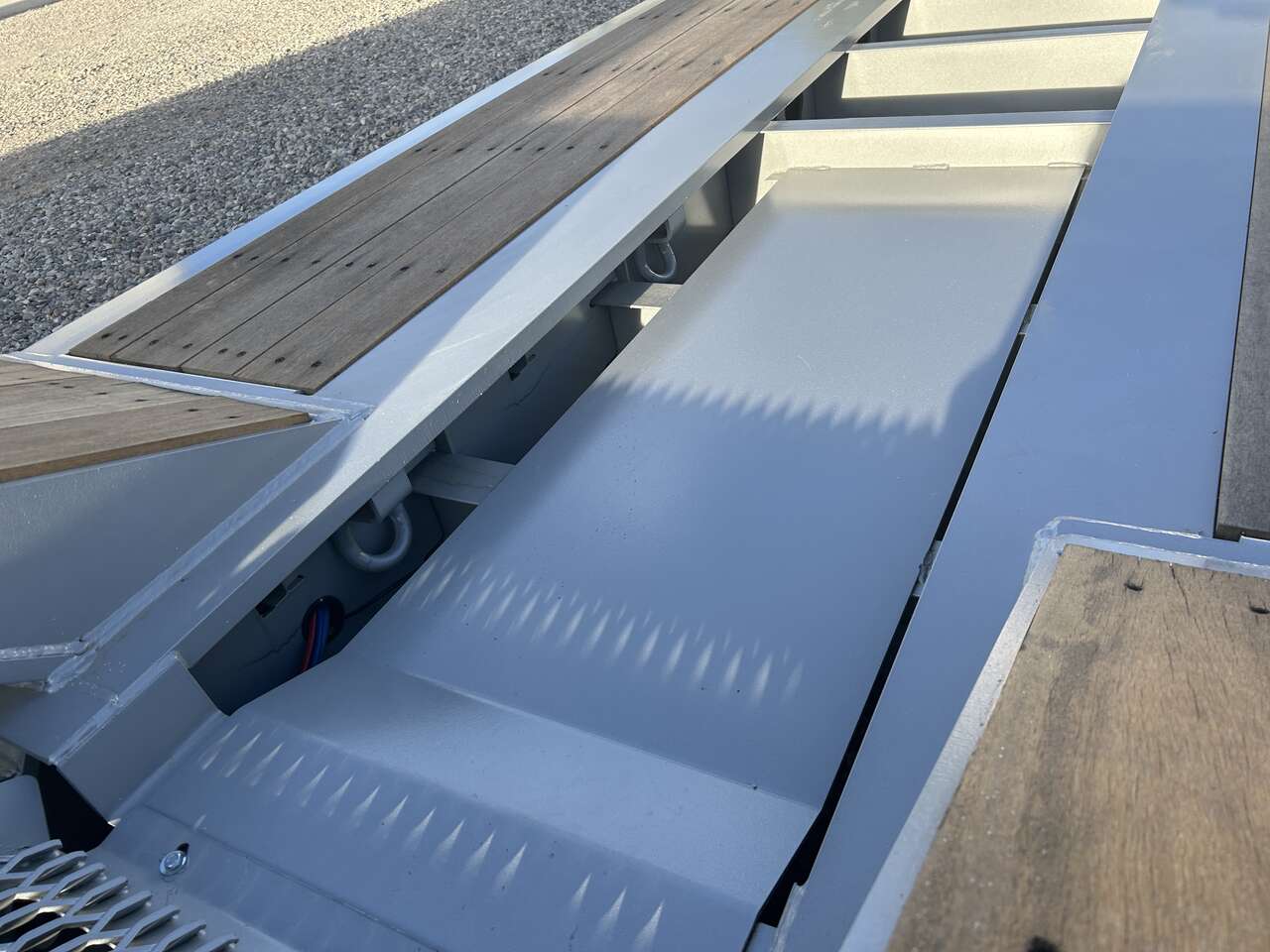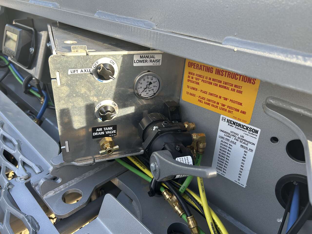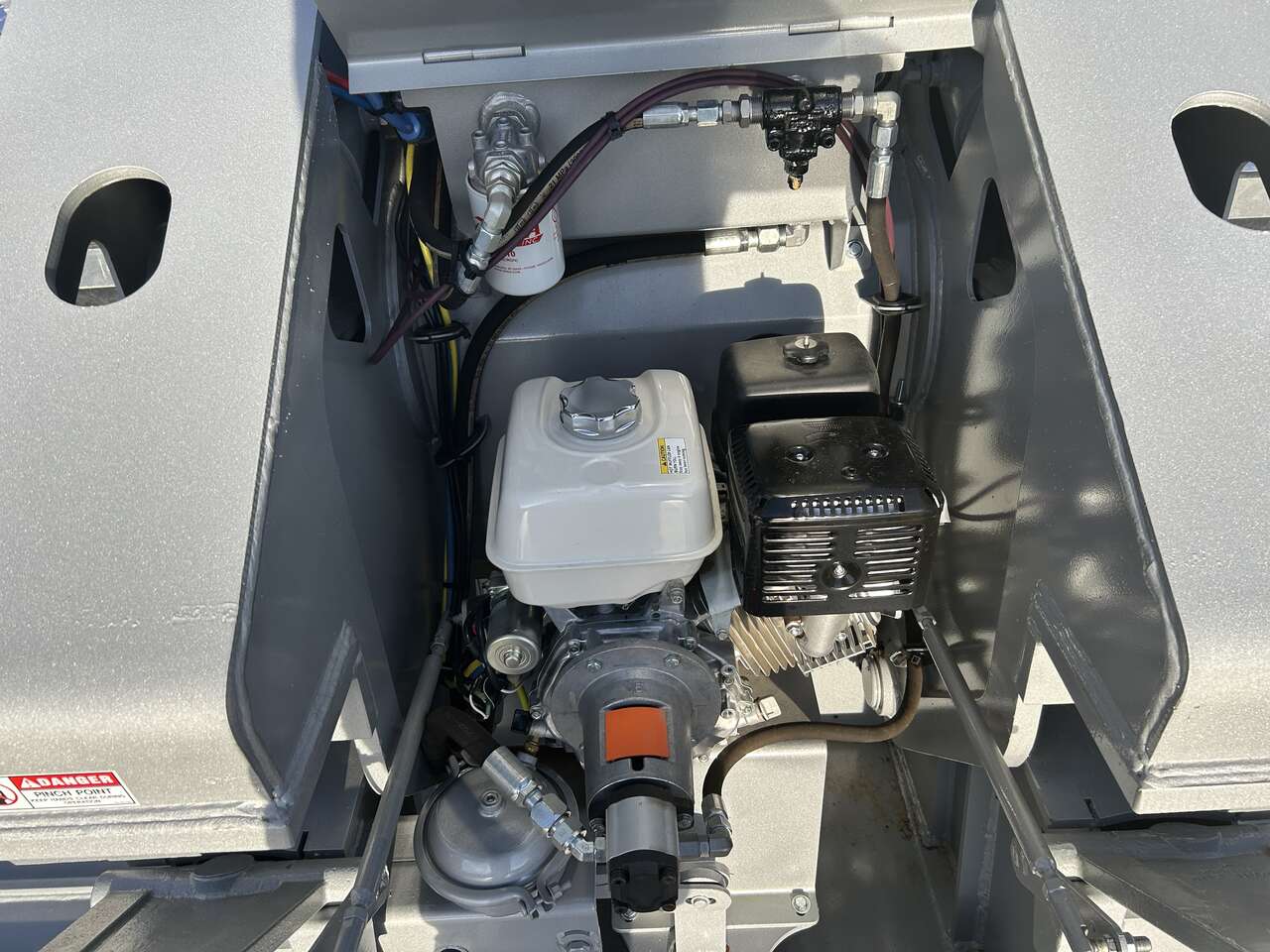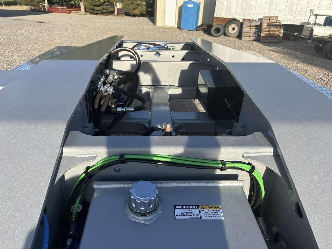 New 2025 Trail King TK110HDG Advantage Plus 55 Ton RGN Paver Special Lowboy, 56' x 108", 16" and 40" king pin settings with 110" and 86" swing, 389cc Honda self contained hydraulics, 65 ton HD gooseneck 5 position height, hydraulic T-bar gooseneck support arm, arched gooseneck for increased truck fender clearance, aluminum diamond plate 13' gooseneck fenders, 6" ground clearance 18" deck height, 25'9" well, knuckle trough covered with 1/4" steel and heavy duty expanded metal bolted in boom trough, load bearing 26 degree slope covered with 1 3/8" Apitong 60" wheel spacings, Alcoa Durabrite polished aluminum wheels, Stemco grit-guard hub seals, 1 3/4" Apitong raised decking, 22 D-ring tiedowns, 30 swingout out riggers with planks, amber strobes at rear, first axle chain up with air shutoffs, front and rear flag holders, remote flasher with battery backup, grey metallic paint with white decals, bridge lock decking screws, stainless around lights in tail channel, front ramps, Airway per axle scales, 4th flip axle, booster, or stinger ready. Build sheets available upon request. FET has been paid and is included in the price of $141,900.00 - Trailer is located near Grand Junction, Colorado