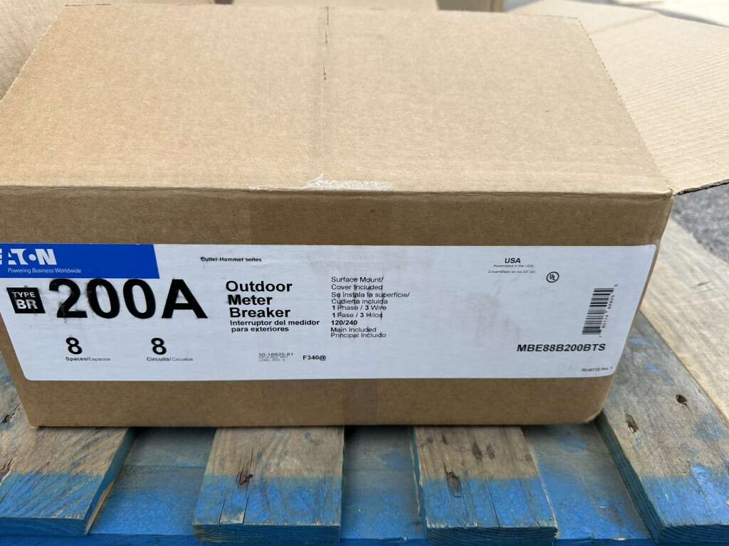 Brand new Eaton MBE88B200BTS outdoor meter breaker. I have 9 of these available for $210 each or $200 each if you purchase all 9. Thanks for looking!