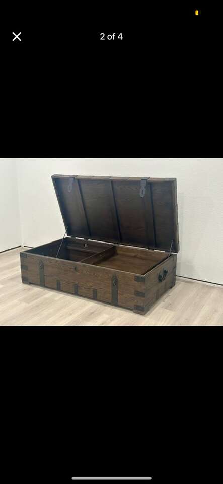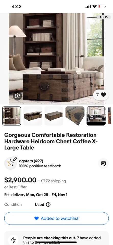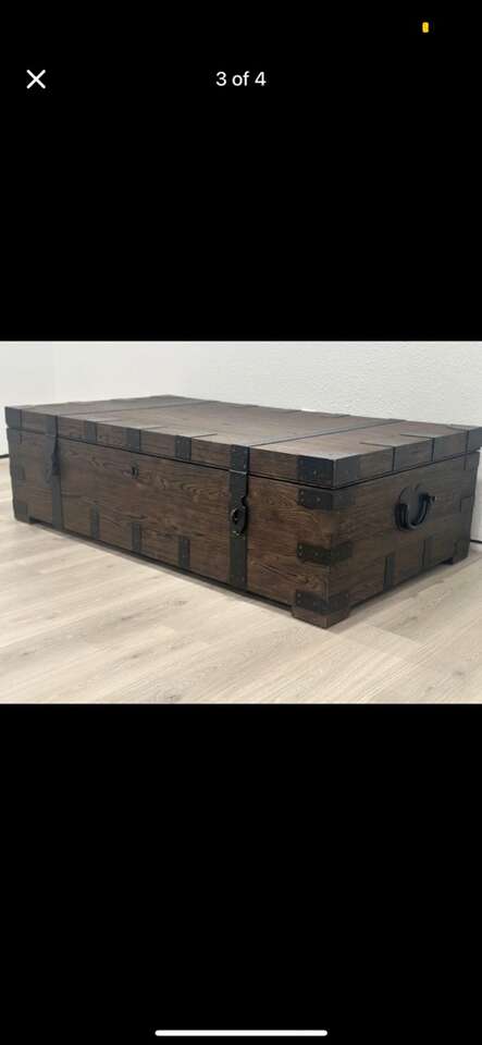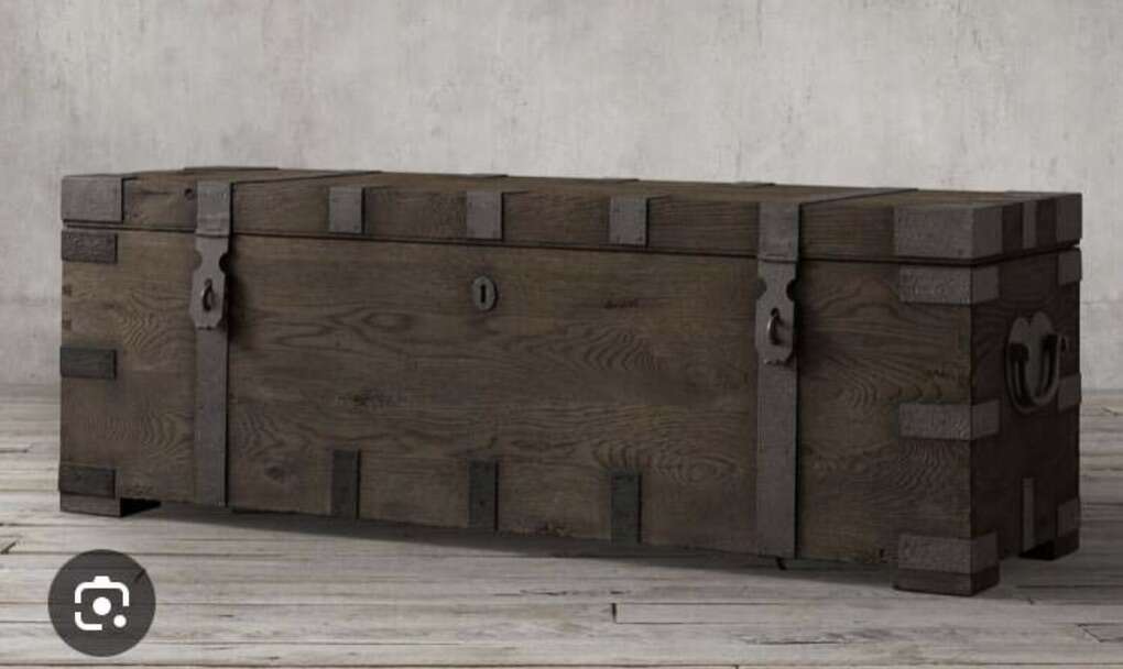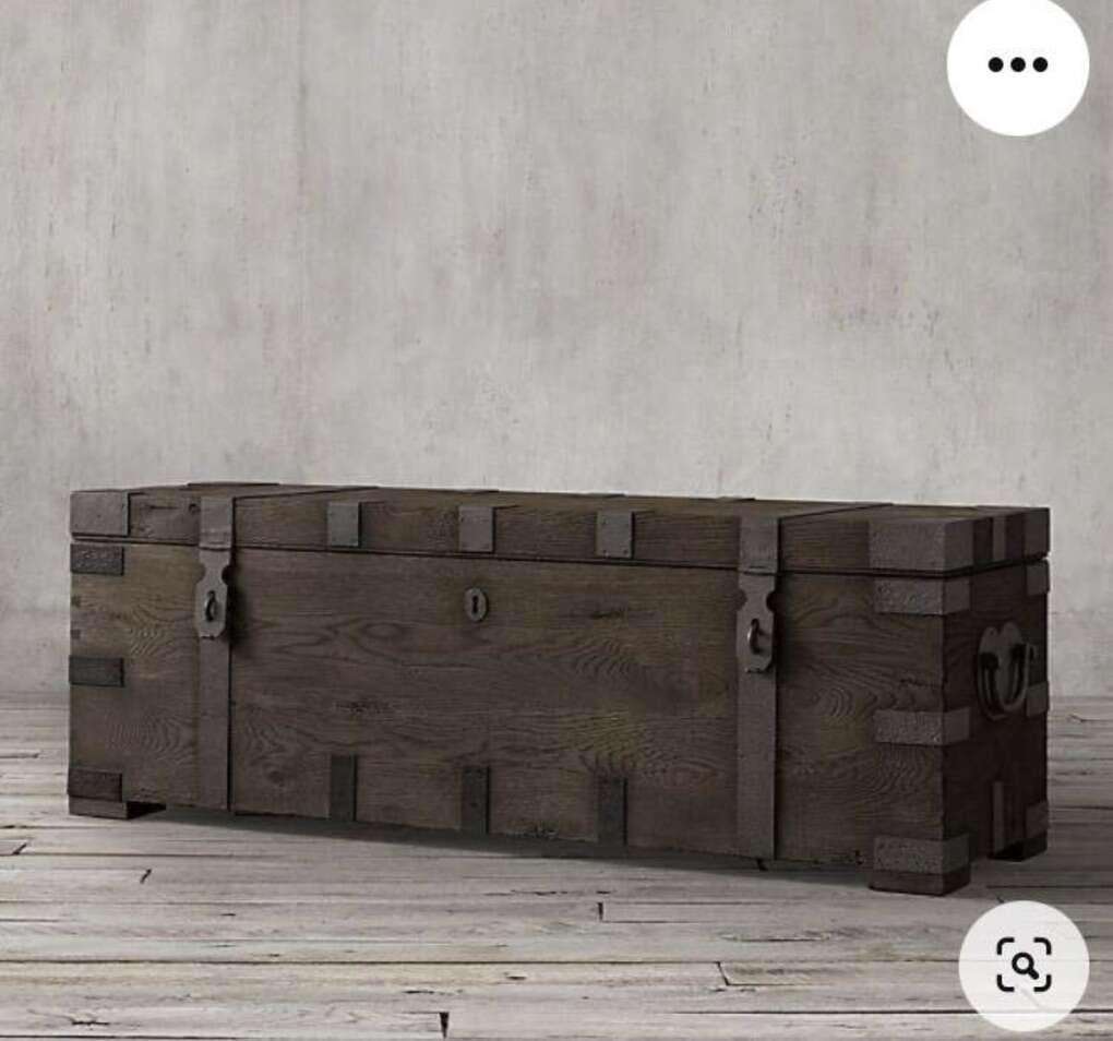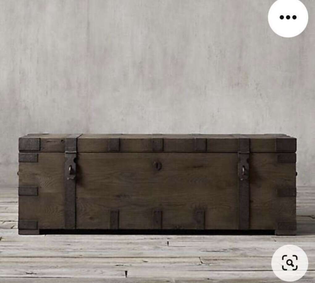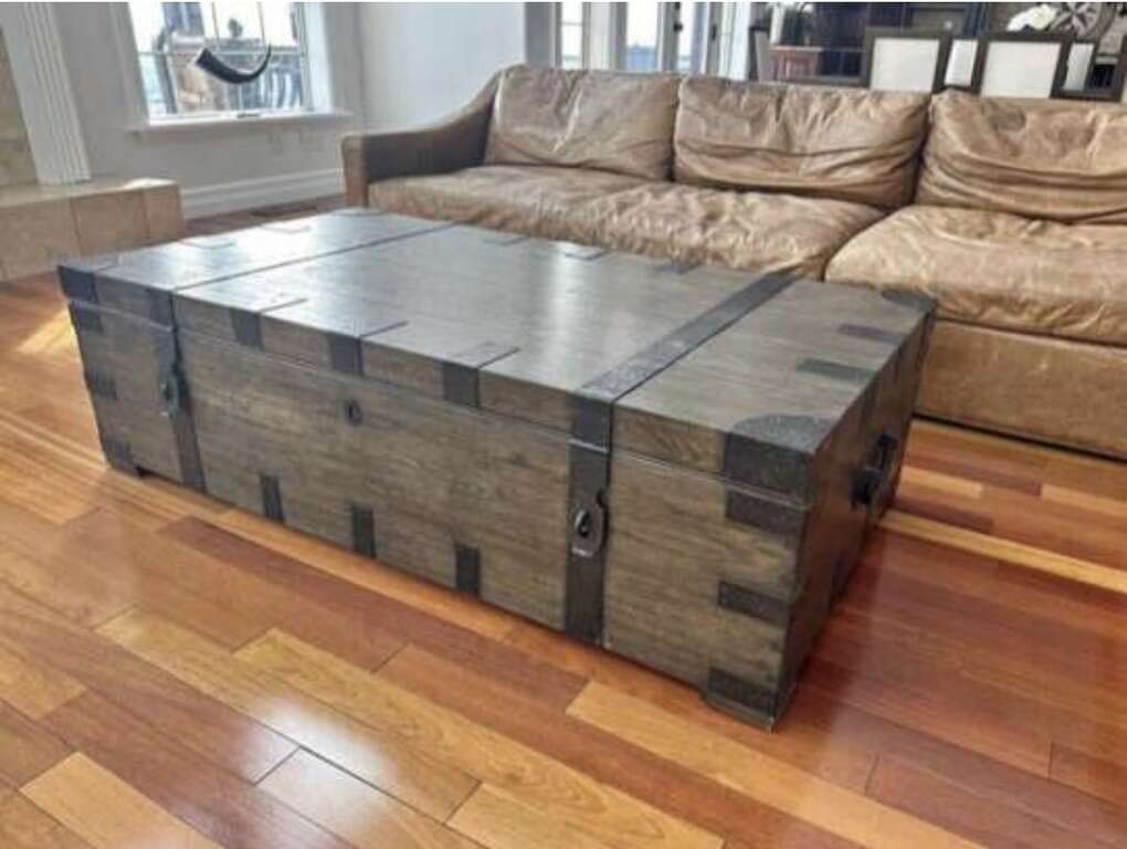 Reduced !!!!!! Gorgeous Comfortable Restoration Hardware Heirloom Chest Coffee X-Large TableTrunk Great pristine a new Condition Rare!! ..price was $4899 you can put whatever you want in it, and the table looks very fashionable and comfortable to sit at!! In the days of heirloom silver, families stored their prized flatware and serving pieces in wooden trunks such as these – heavyweight and fitted with interior organization. Our authentic reproduction has been repurposed for use as a coffee table or console. Hand-carved of solid hardwood, it is accented with substantial hand-forged, hand-hammered iron hardware.