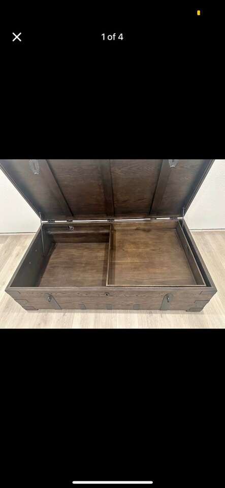 Add a touch of vintage elegance to your living space with the Restoration Hardware Heirloom Chest Extra-Large Coffee Table. Designed to resemble a well-traveled antique trunk, this stunning piece offers both functional storage and refined style, making it the perfect centerpiece for any room.