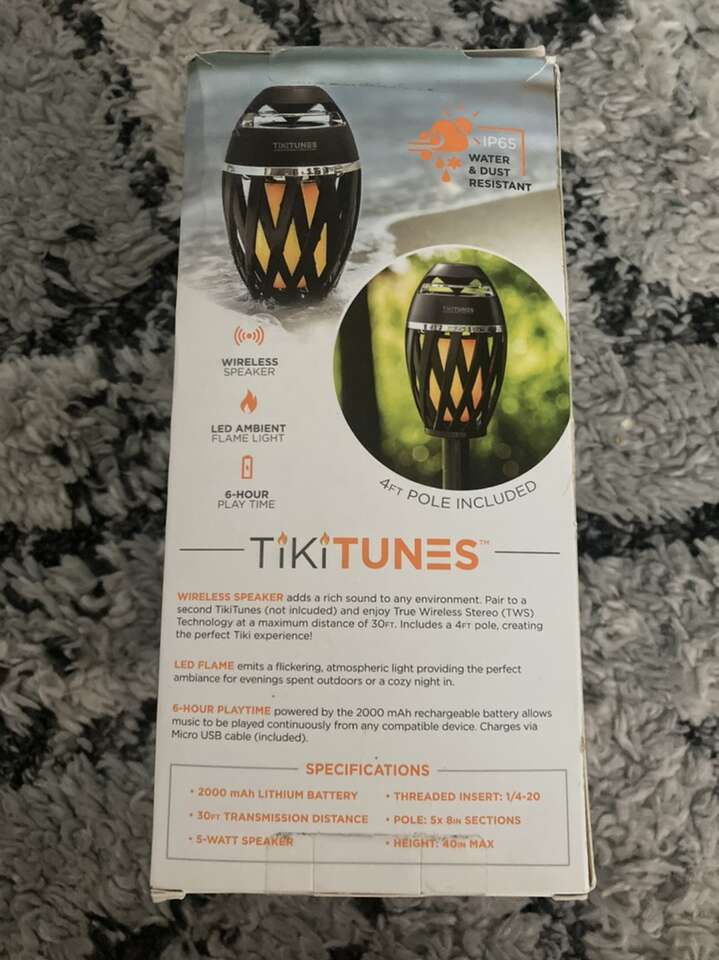 Tiki tunes wireless speaker Water and dust resistant Comes with pole stand Only used 1 time