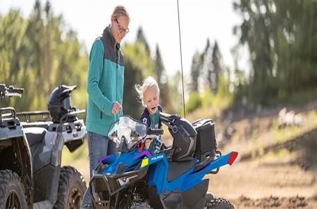 Engine Type: Single-Cylinder Displacement: 4.3 cu. in. (70 cc) Bore x Stroke: Bore: 1.85 in. (47 mm); Stroke: 1.59 in. (40.3 mm) Cylinders: 1 Engine Cooling: Air Fuel System: Gas Starting System: Electric Front Suspension: Independent A-Arm Front Travel: 4 in. (101.6 mm) Front Brake Type: Hydraulic Disc Front Tires: OBOR® 18 x 7 - 8 Rear Suspension: Swing Arm Rear Travel: 4 in. (101.6 mm) Rear Brake Type: Hydraulic Disc Rear Tires: OBOR® 18 x 7 - 8 Frame: Steel Dry Weight: 278 lb. (126 kg.) Fuel Capacity: 1.5 gal. (5.7 L) Ground Clearance: 4 in. (100 mm) Machine Dimensions (LxWxH): L: 56 in. (1422.4 mm); W: 35.5 in. (901.7 mm); H: 35.3 in. (895 mm) Wheelbase: 37.8 in. (958 mm) Drive Train: Continuously Variable (CVT)