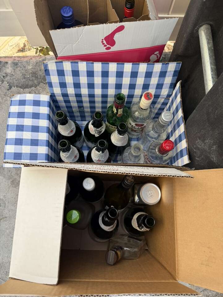 I have a bunch of empty liquor and wine bottles also champagne bottles. Use for arts and crafts or to refill or whatever you need. Pictures are sample ideas.