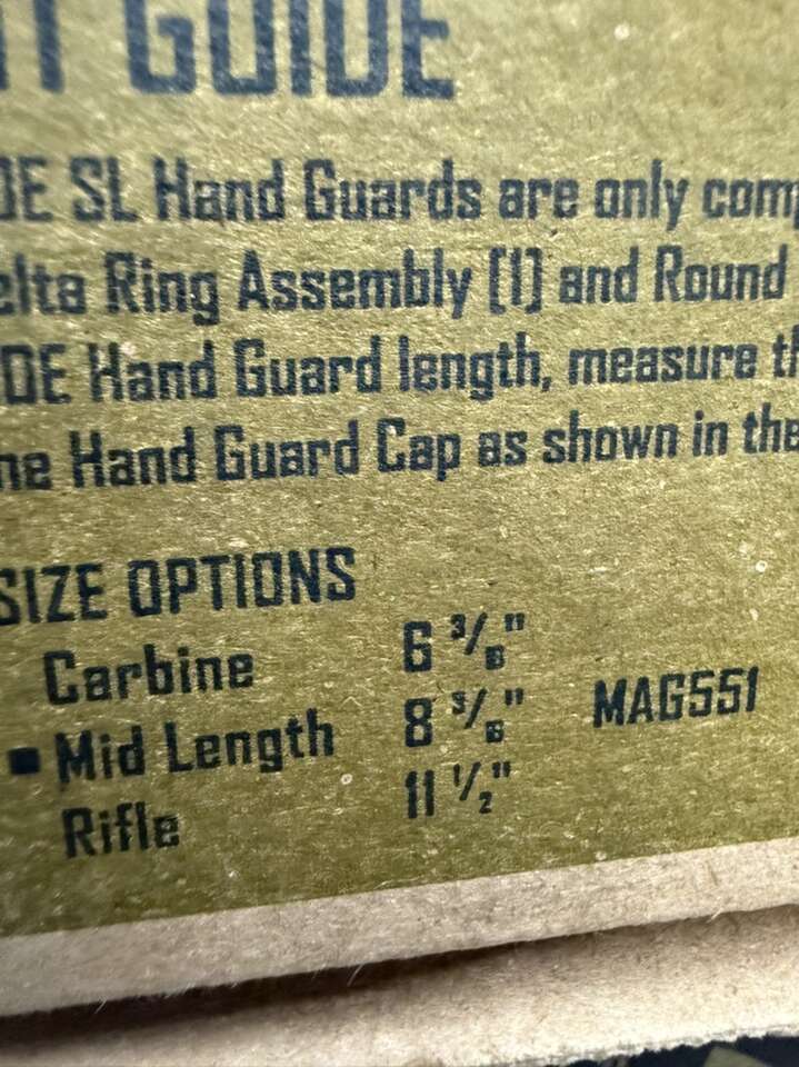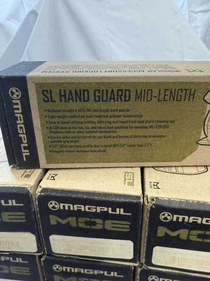 The MOE SL Hand Guard, Mid-Length is a direct replacement for most factory plastic, two-piece, mid-length hand guards and requires a ROUND front hand guard retaining cap and rear spring-loaded delta ring (some mid-length firearms are equipped with a triangular retaining cap and are not compatible).