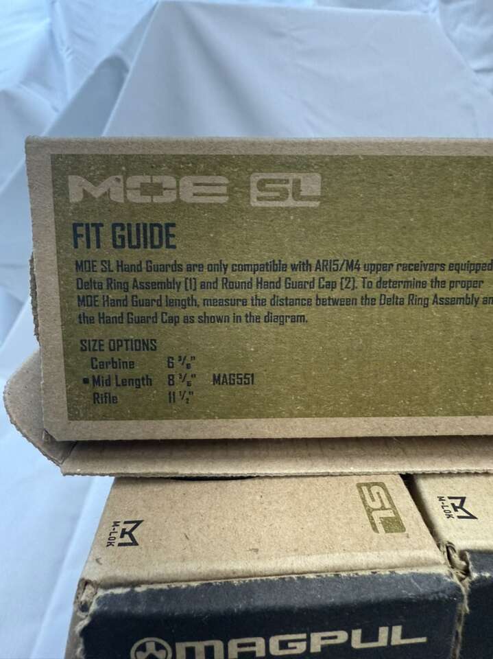 Lightweight, Reinforced, Heat-Resistant Polymer Construction Front Lip and Long Side Extensions Shields Hands From Hot Sight Assembly Slots at the Two, Six, and Ten O'Clock Positions for Mounting Direct-Attach M-LOK Accessories or M-LOK 1913 Picatinny Rail Sections 1/3 (15%) Narrower Profile Than Original MOE (1.8 Rather Than 2.2) Integral Riveted Aluminum Heat Shield Weight: 8.3 oz. Length, Max: 10.9 in. Height: 2.4 in. Platform: AR10, AR15, M4, M16 Compati bility: AR15/M4 Firearms with Mid-Length Gas System and A2 Front Sight Easy to Install Utilizing Existing Delta Ring and Round Front Hand Guard Retaining Cap with A2 Front Assembly *NOTE: The Mid-Length MOE SL Hand Guard is a direct replacement for most factory plastic, two-piece, mid-length hand guards and requires a ROUND front hand guard retaining cap and rear spring-loaded delta ring (some mid-length firearms are equipped with a triangular retaining cap and are not compatible). Not compatible with piston operated AR platforms.