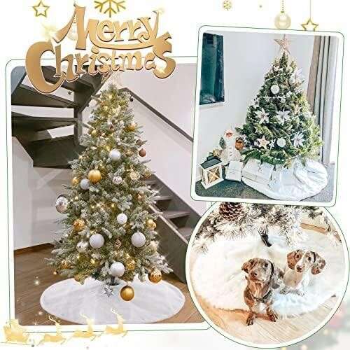 Retailer's Title: Faux Fur Tree Skirt White Christmas Tree Skirt for Merry Christmas Decorations Party Holiday Ornaments 36 Inch