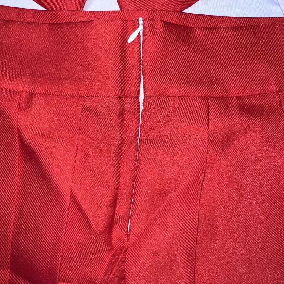VenmoMy daughter bought two of these costumes for her and her friend for halloween last year (red and green) They ended up doing something else, so they are new. She paid $30 for each. I would consider the red a size small. The shirt has a stretchy fabric, but the sleeve openings are not stretchy. The pleated skirt has no stretch either.