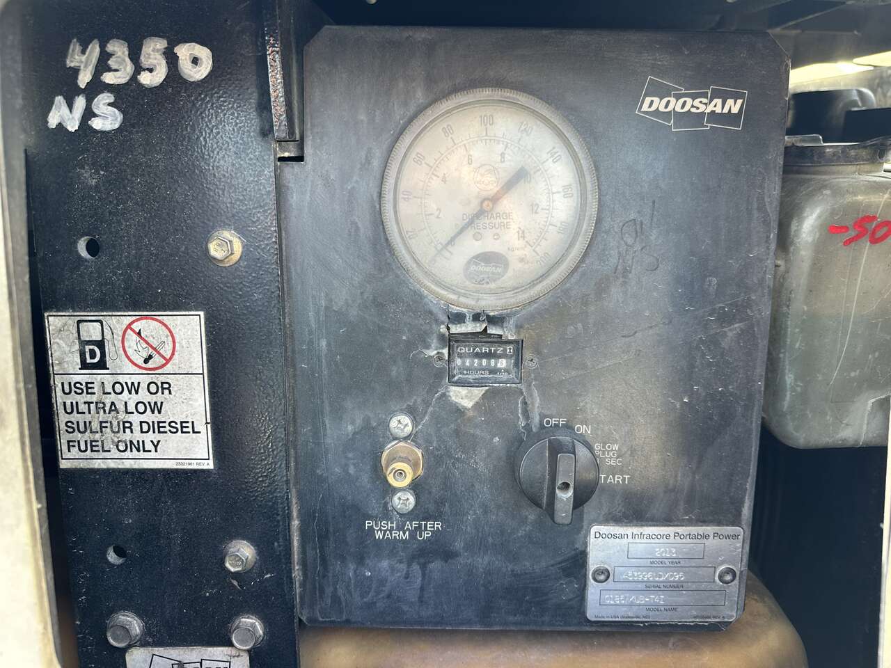 DRIVE Engine Type: Kubota 2.4L 4 Cylinder Diesel Engine Condition: Good cold start, Good compression, Cylinder balance normal, Good power, No blowby Compressor: Good. Good output and it works good!