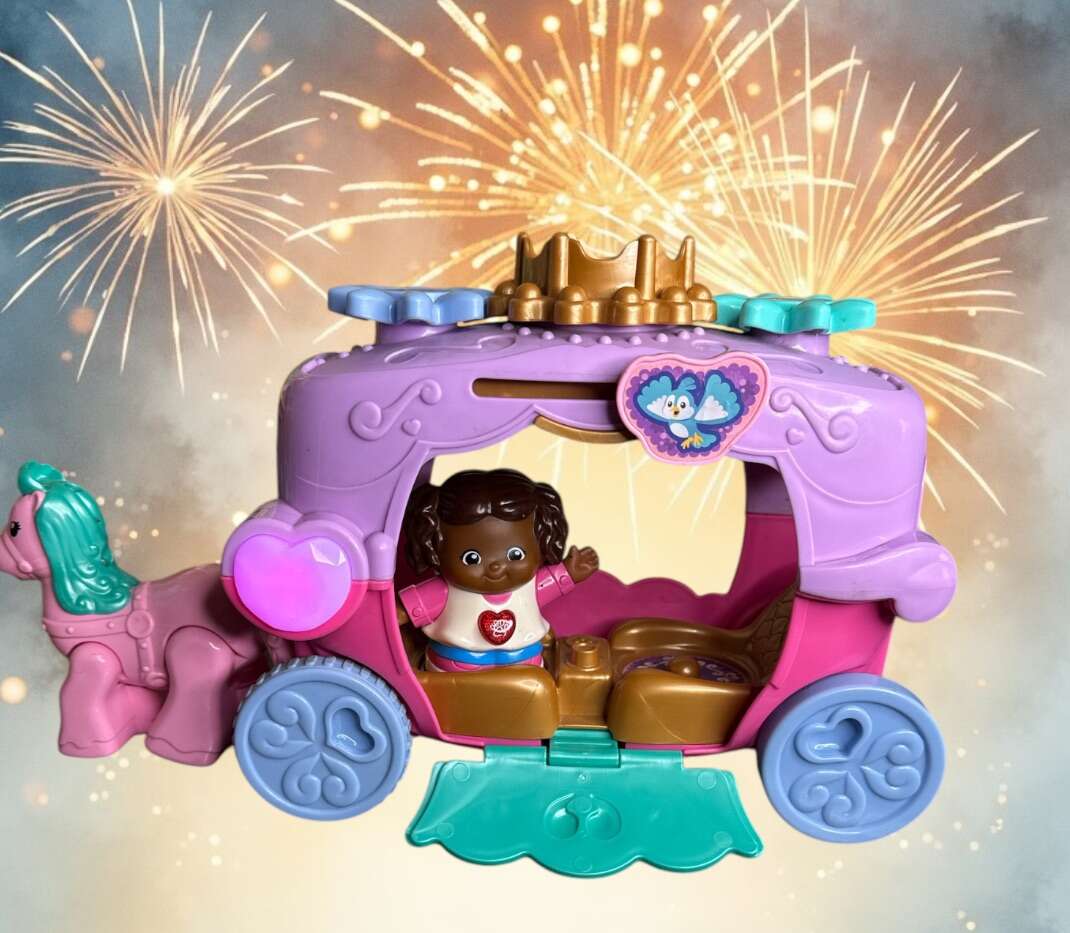 VenmoCutest toy ever !! 21x21”x9” comes with smart people Gavin & Cici smart wheels car, smart horse, elevator . 12 magic points activated by Cici & Gavin. Ages 2 -5 years. Case collapses for storage.