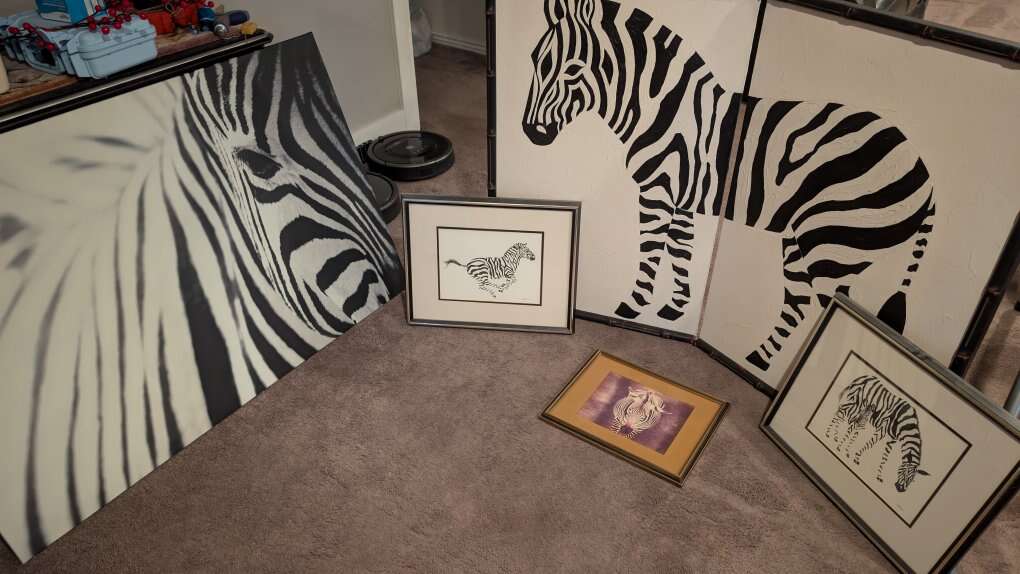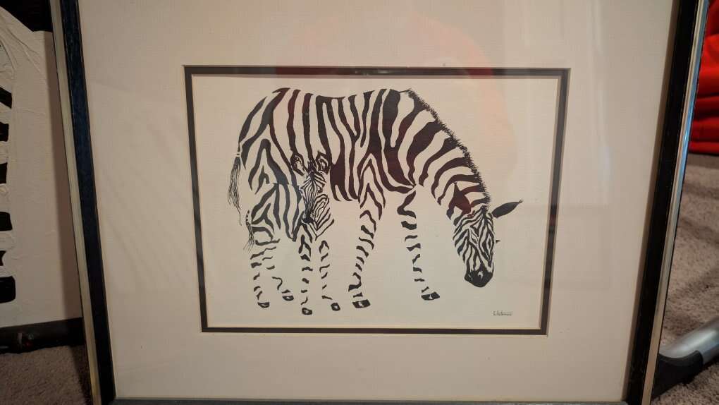Lot of various zebra art. Some examples are over 40 years old. Part of an estate. $200 for everything.
