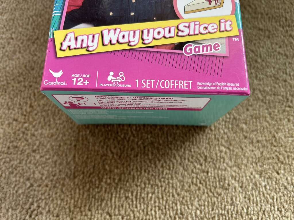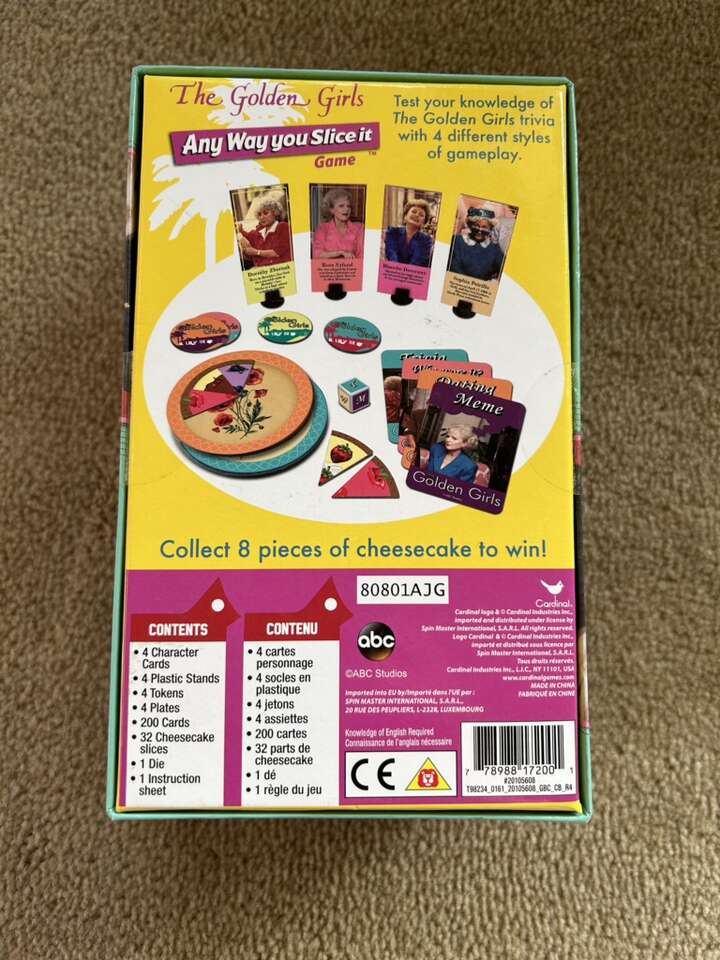 NEW (sealed box) The Golden Girls Any Way You Slice It Game. Age 12+, 2-4 players. Test your knowledge of The Golden Girls trivia with 4 different styles of gameplay. Cardinal Games, Spinmaster. New, unopened condition. Text only. Cash or Venmo.