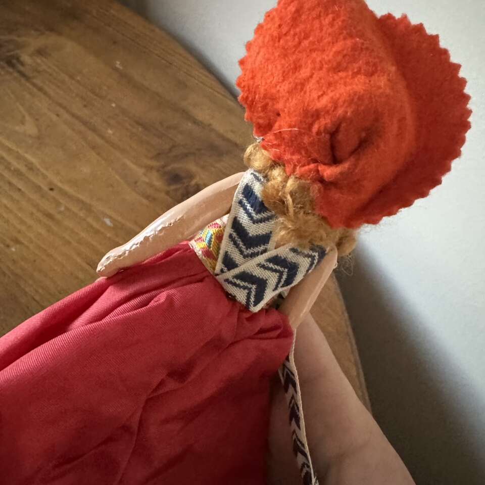 Vintage Princess Anna Storybook Doll Orange Hat Red Dress The lining of her dress does have a rip in it